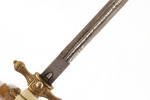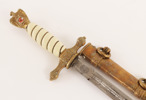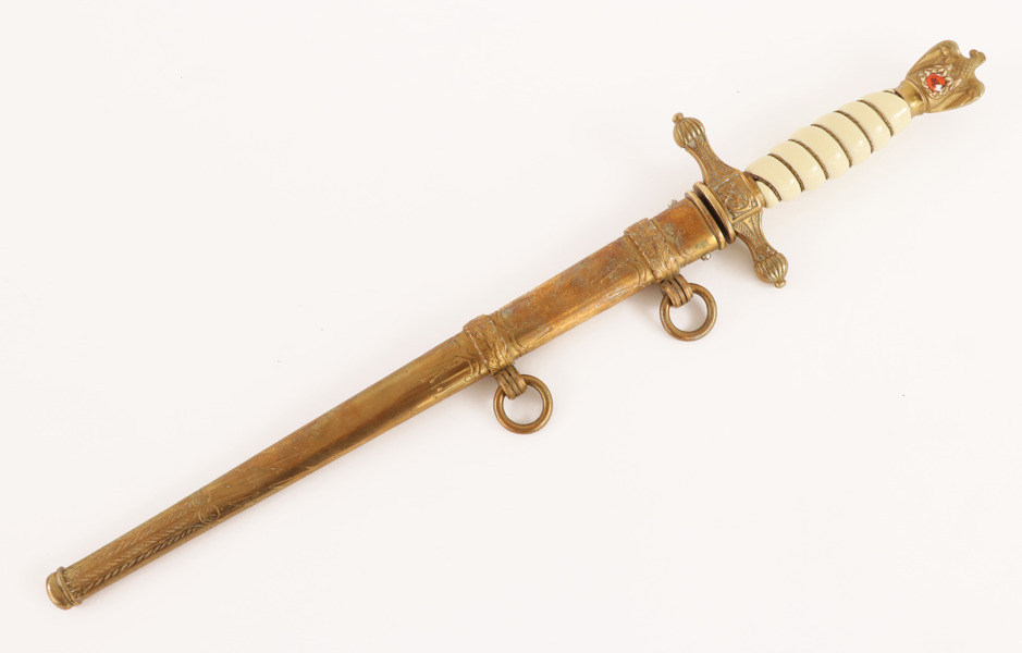 Mässing. Handtag i bakelit. Avslut med dekor av örn. Parerskydd med ankare. Klingan stämplad E&F Hörster Solingen
