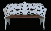 Vitmålad metall. Ribbor av trä. Stämplad.
