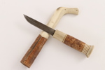 Horn och björkrot. Med skuren och färgad dekor. Monogramsignerad.