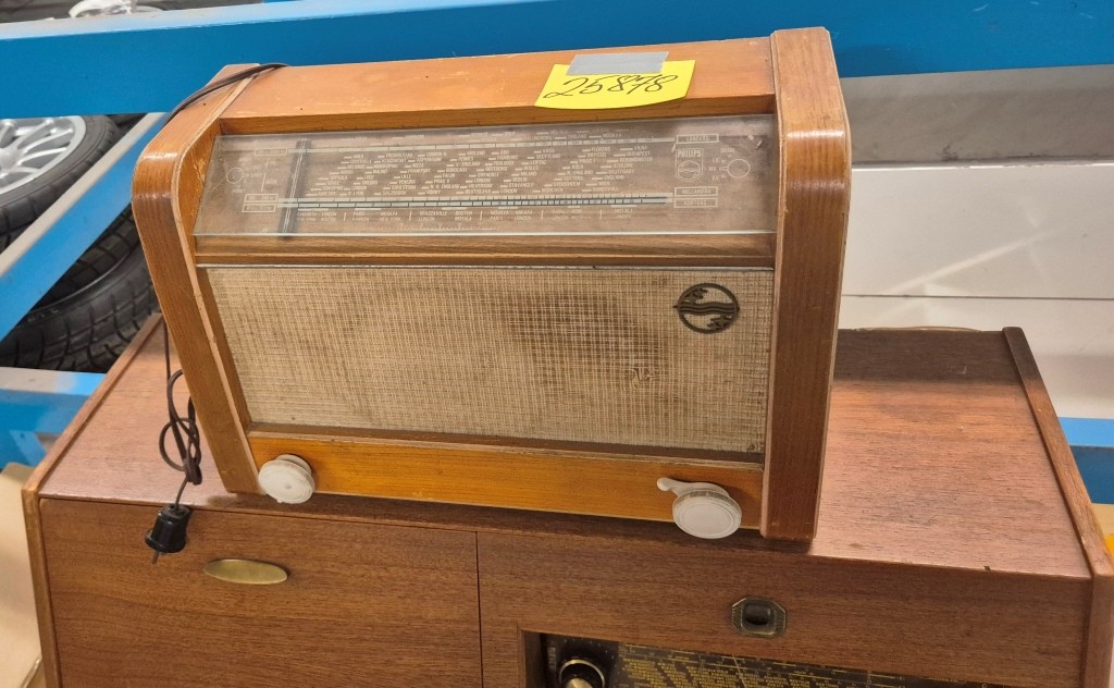 Radiogrammofon Luxor + Radio Philips. Apparaterna har inte provats, säljes utan funktionsgarantier.
