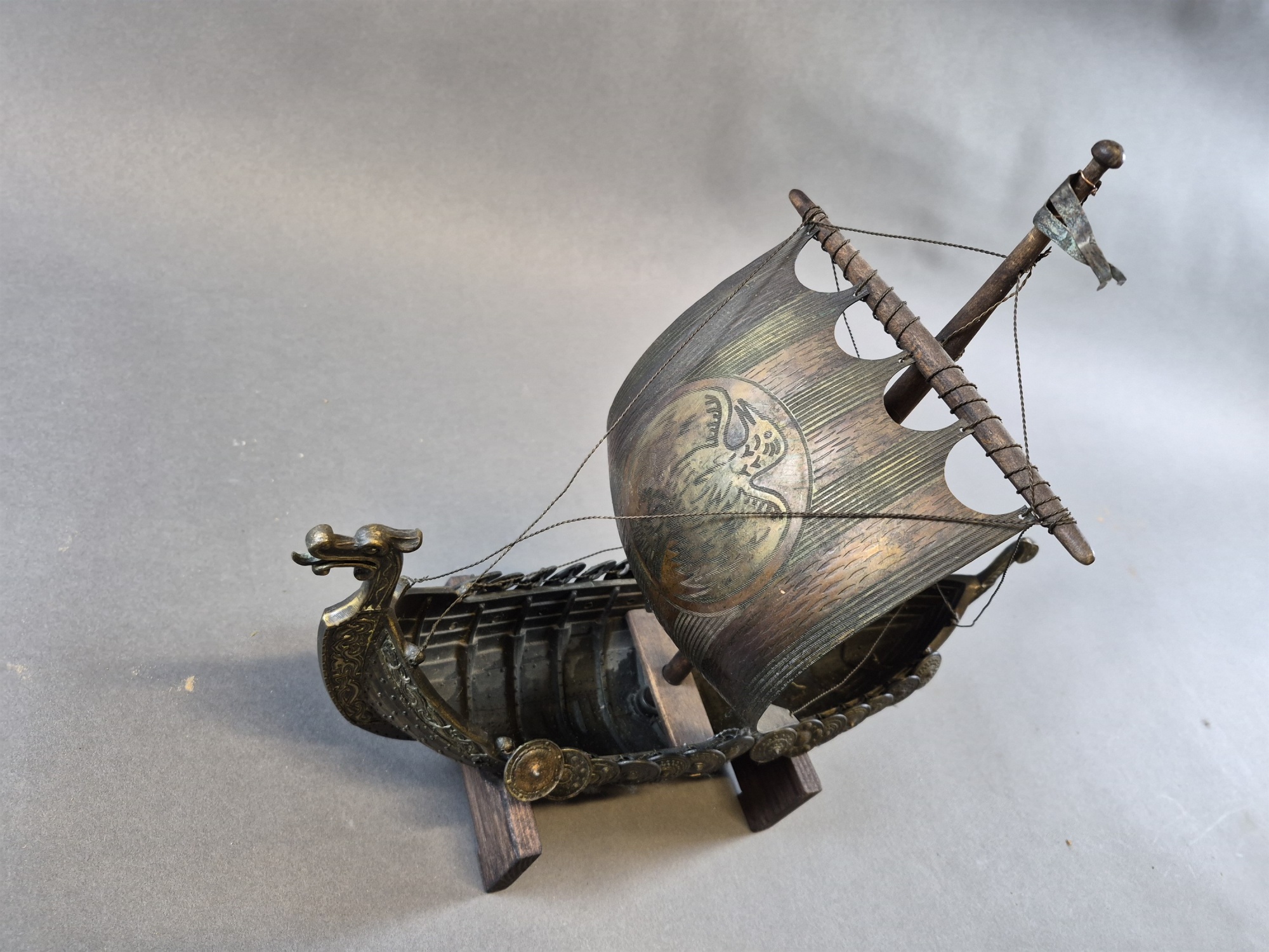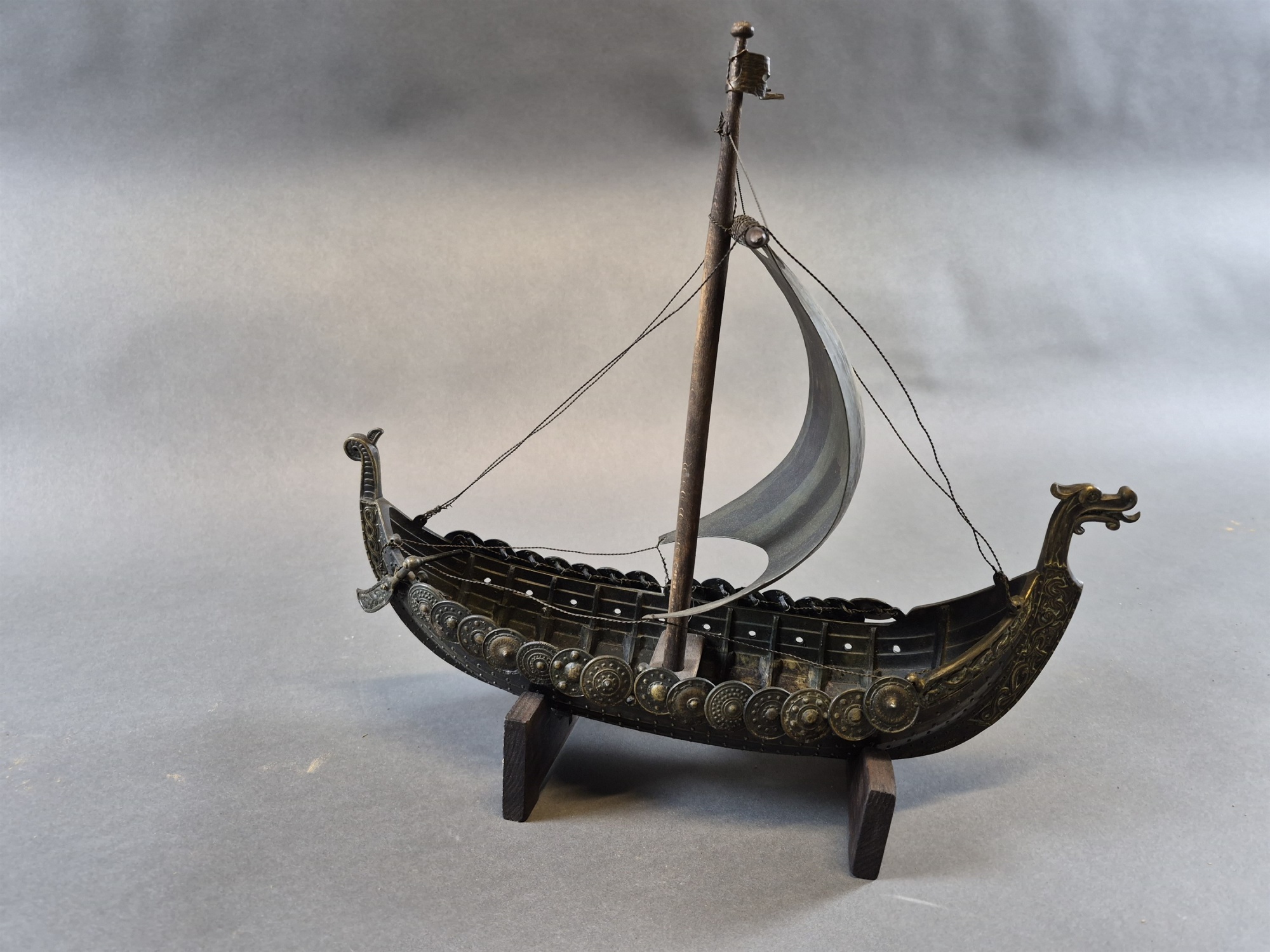 Vikingaskepp, metall, höjd 38 cm, längd 40 cm