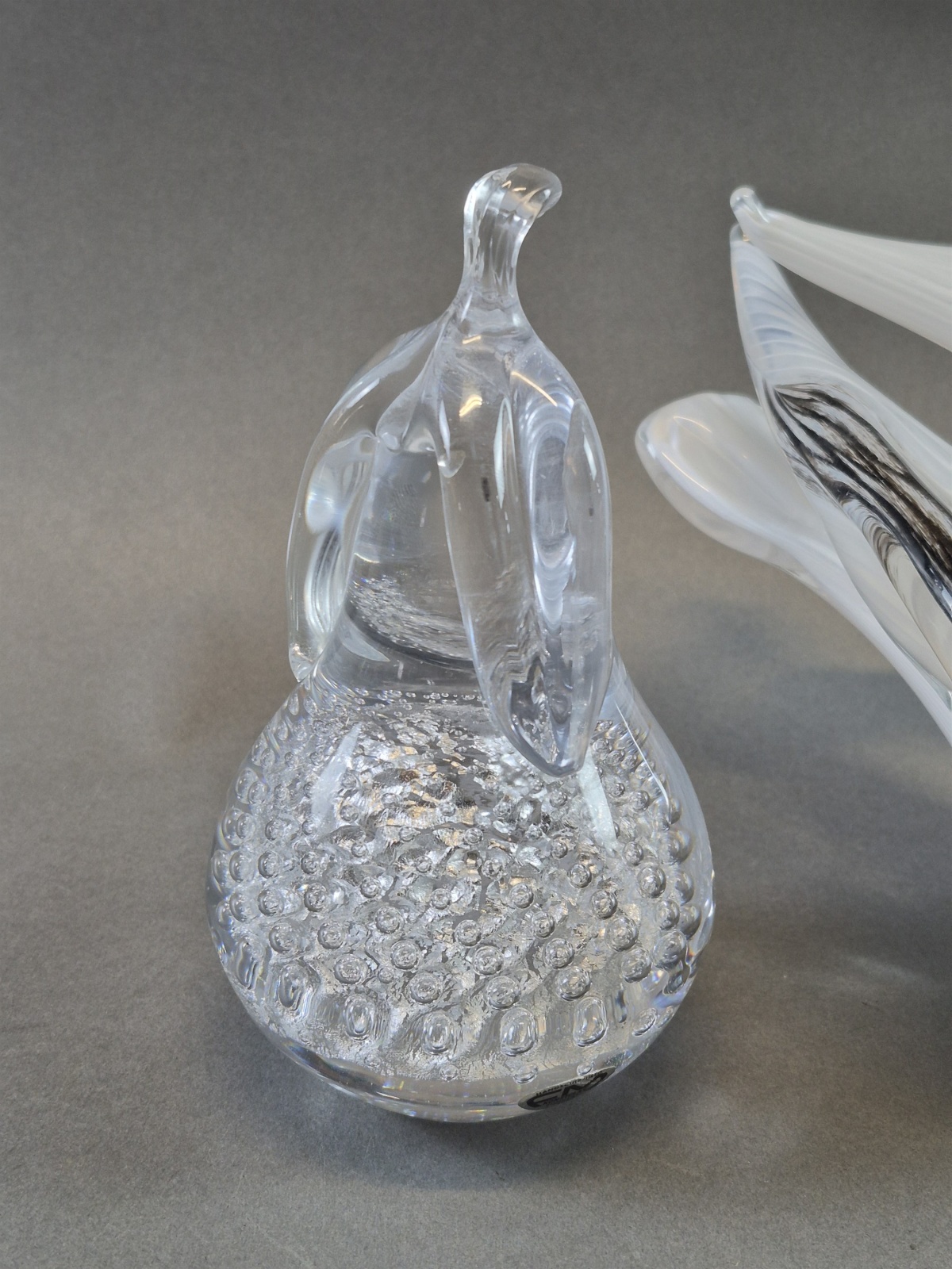 Konstglas 2 st FM; frukt och fågel, högsta höjd 15 cm