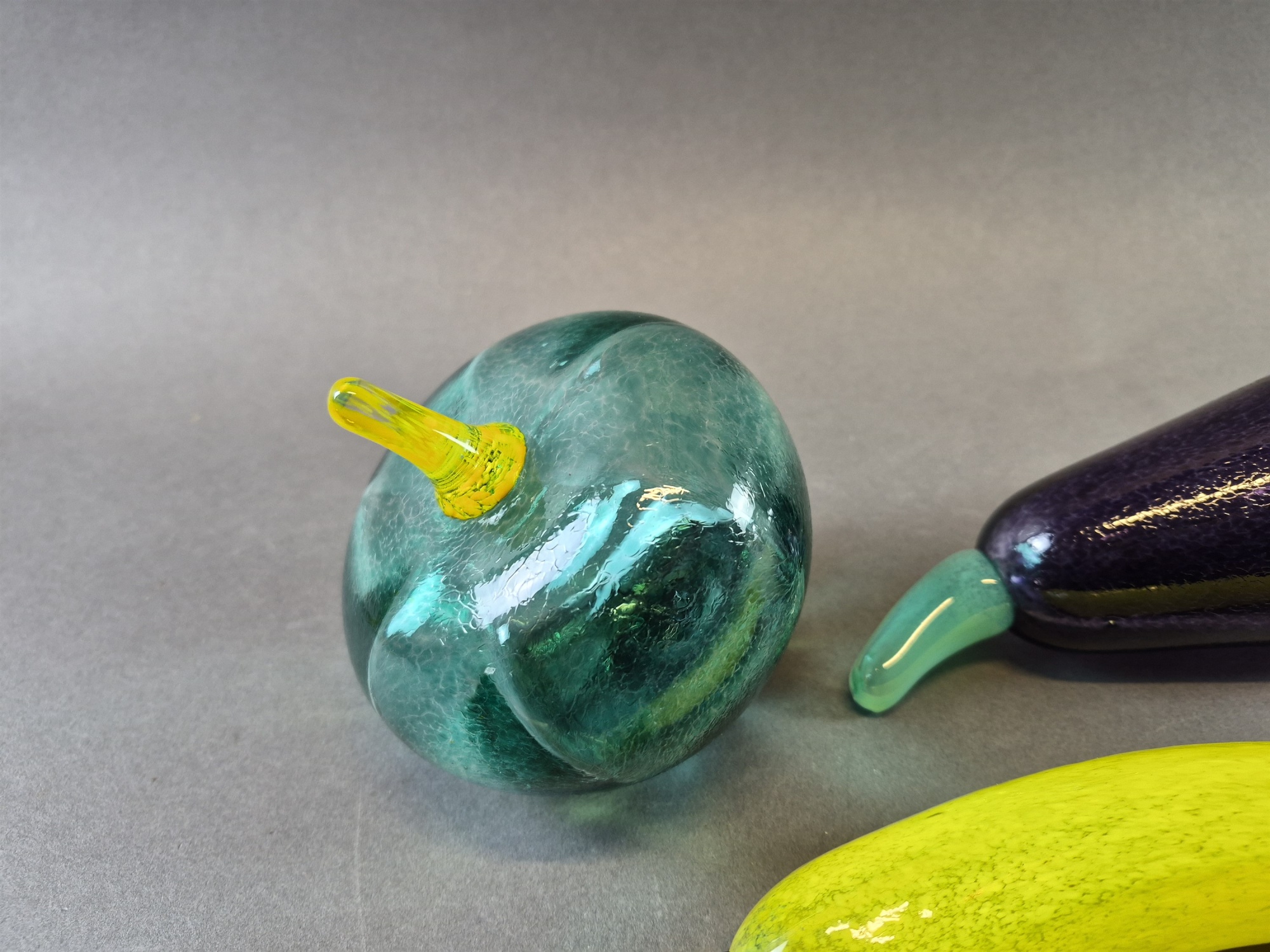 Bilder Glasfrukter 3 st Gunnel Sahlin Kosta Boda, längsta mått 21 cm