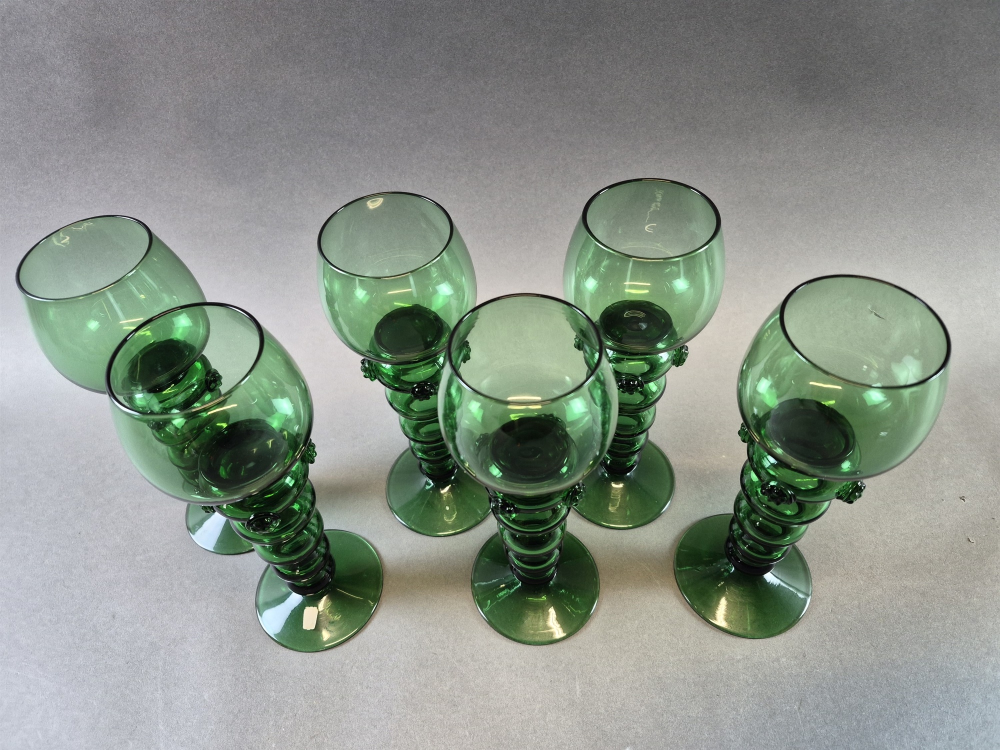 Remmare 6 st, gröntonat glas, höjd 21 cm