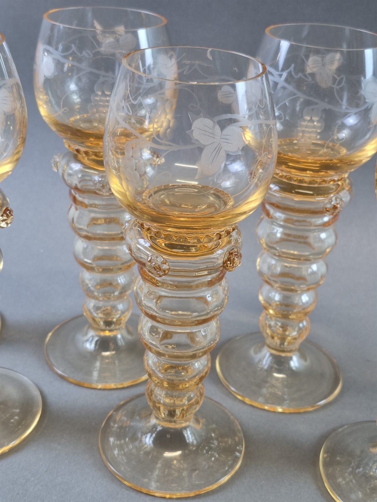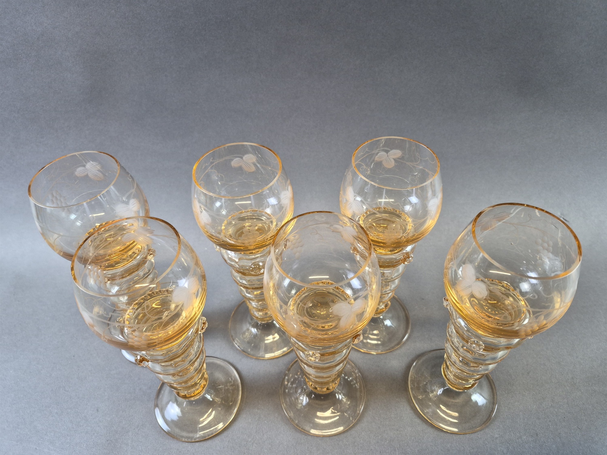 Remmare 6 st, gultonat glas, druvdekor, höjd 21 cm