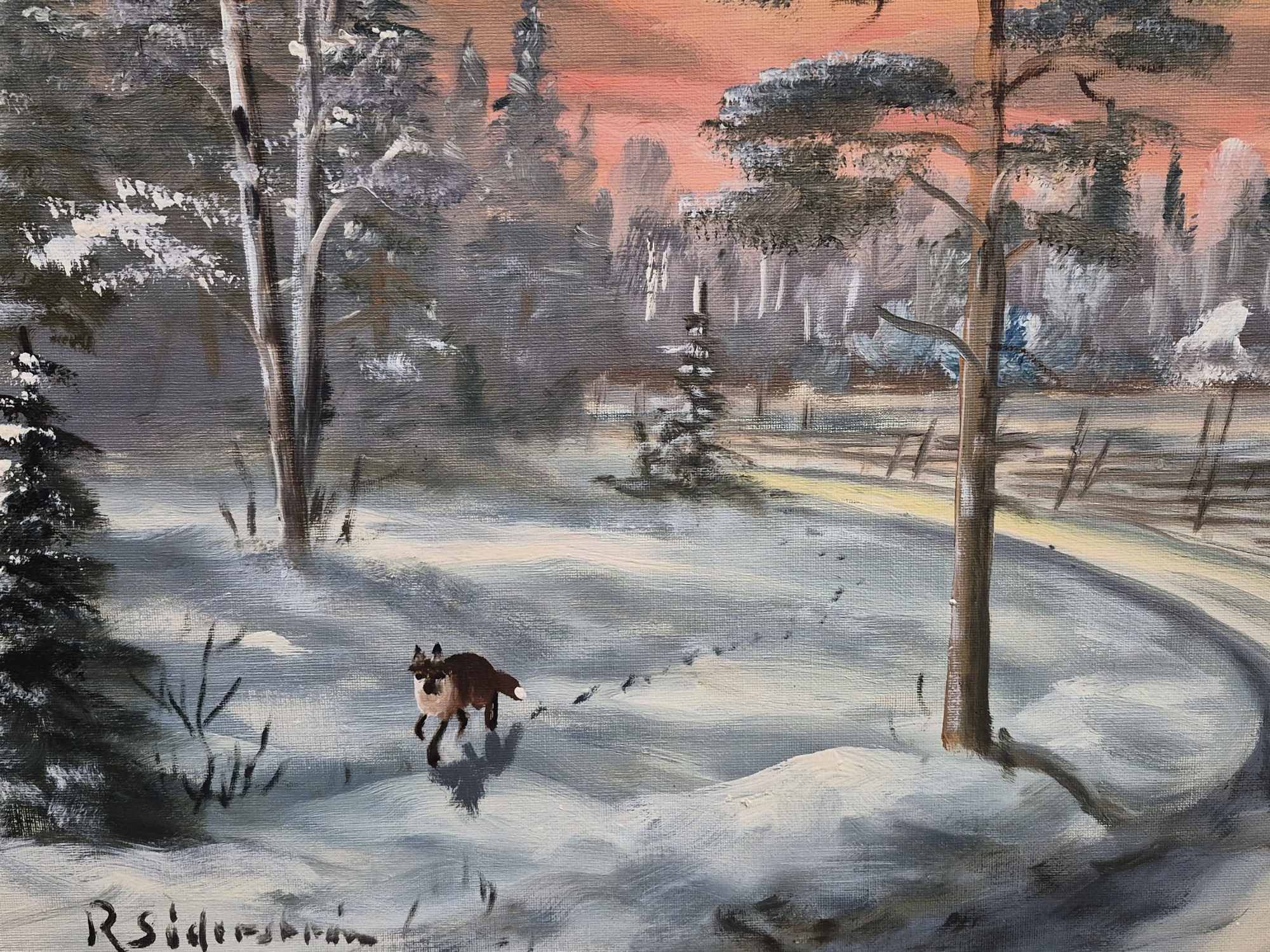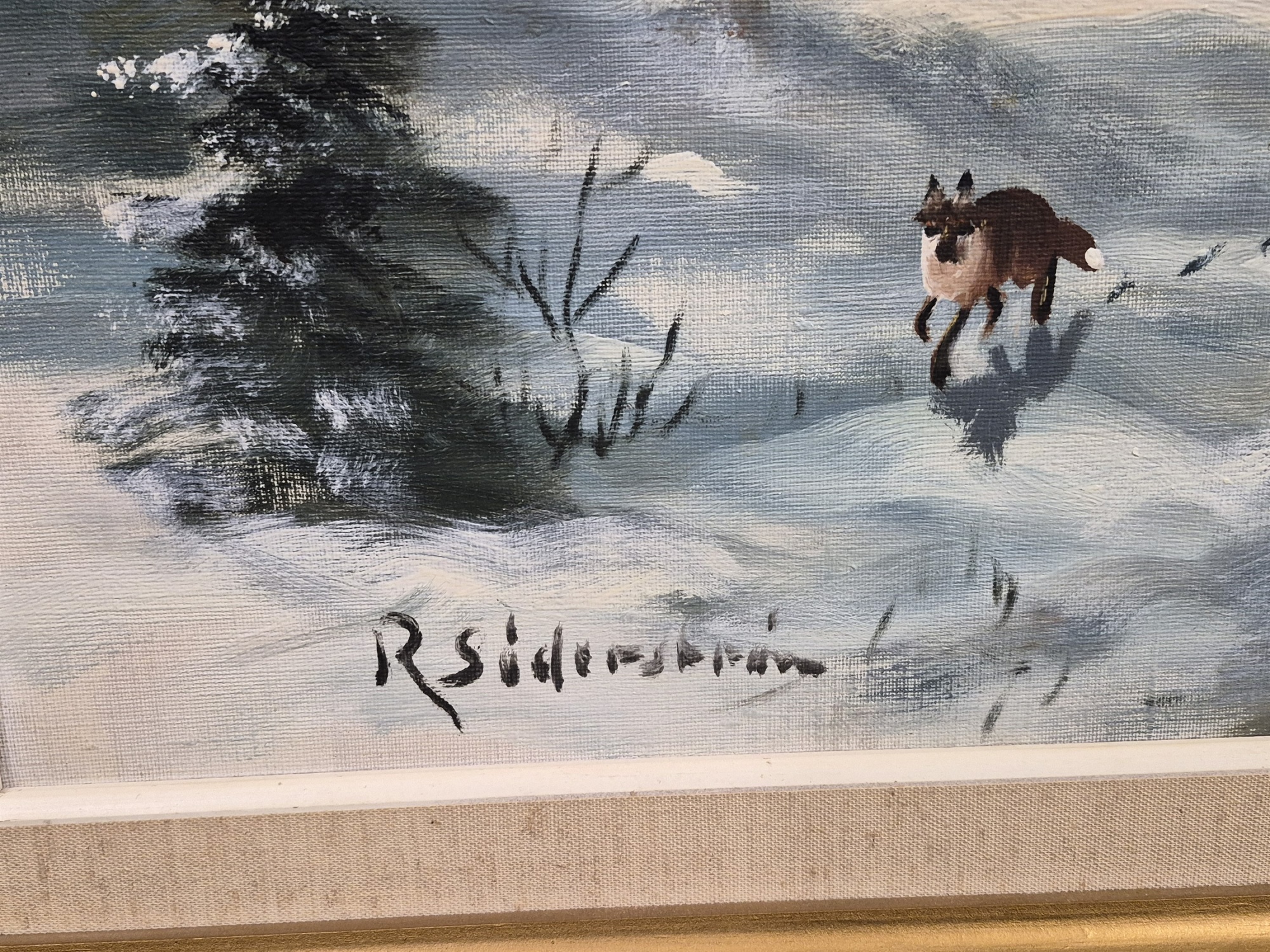 Bilder R.Söderström, olja på duk, "Räv i vinter", mått 86 x 66 cm