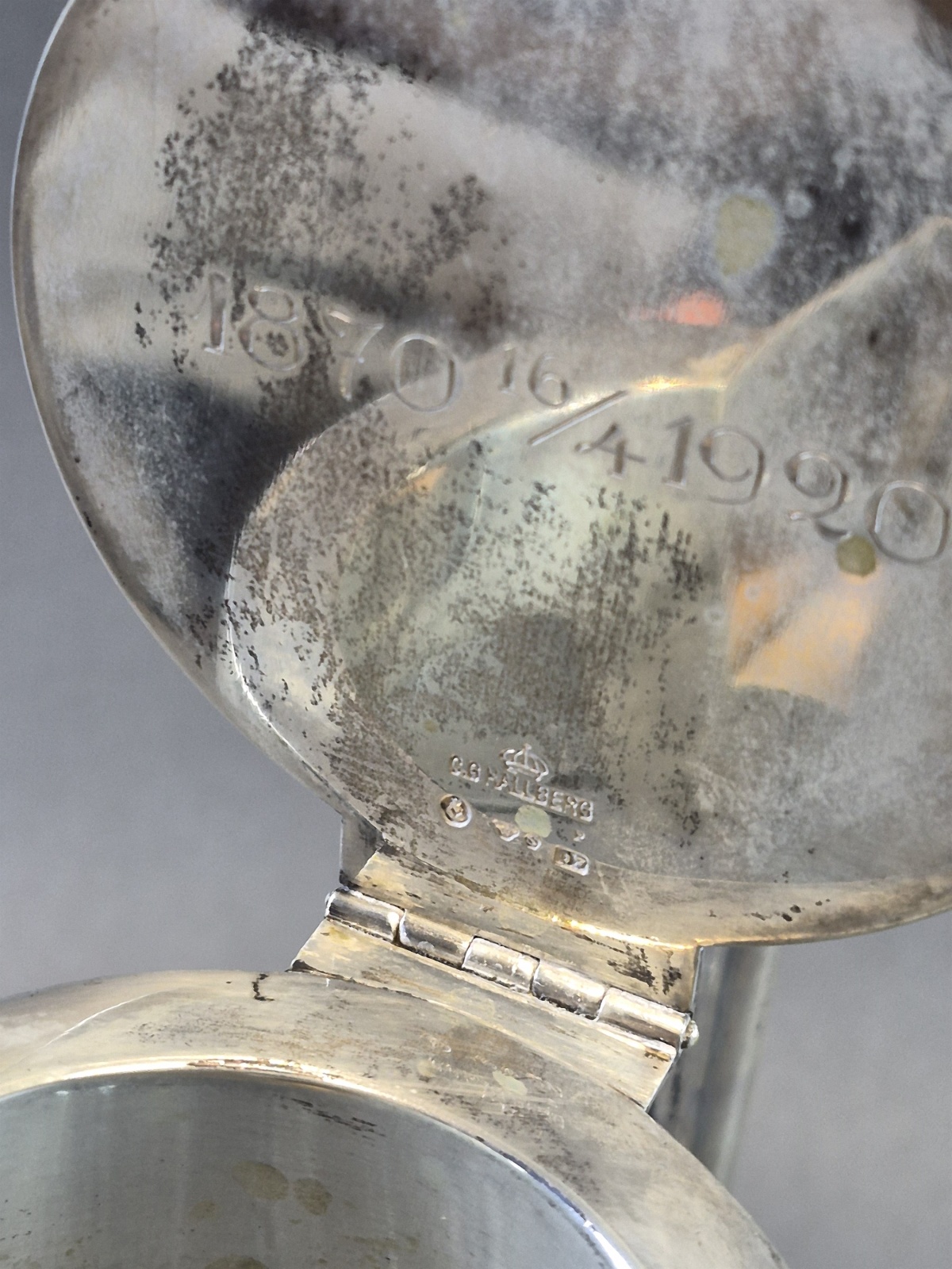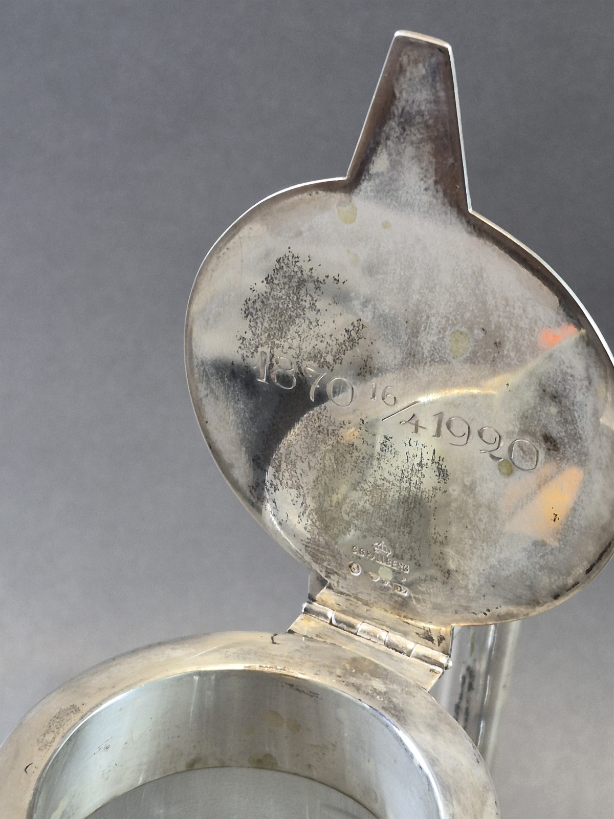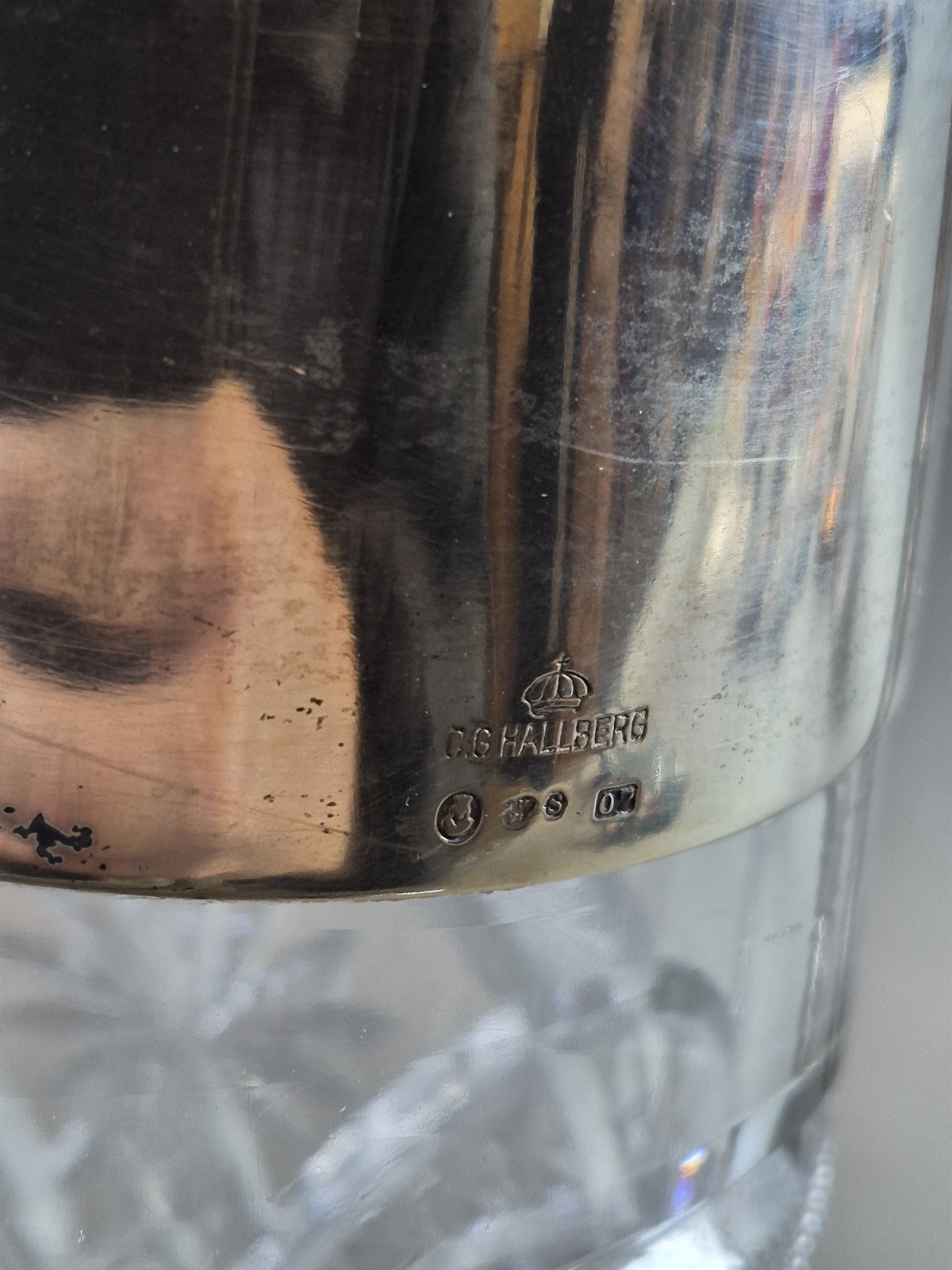 Kanna glas med handtag och lock i silver, höjd 29 cm