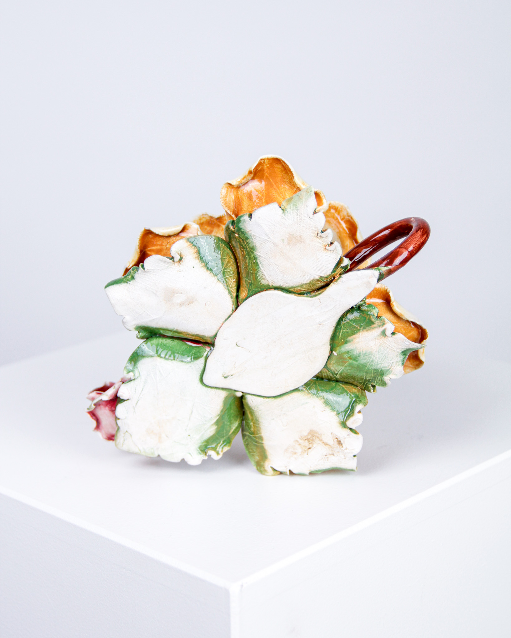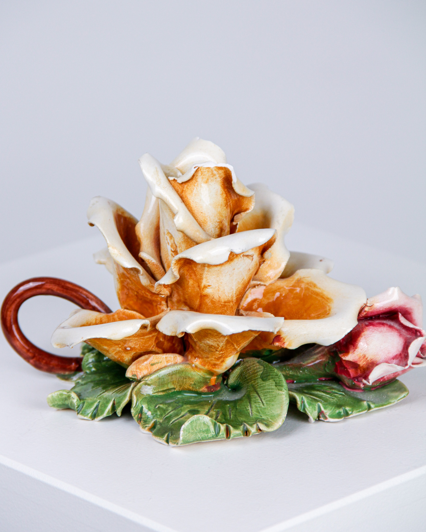 Ljusstake, blomma, glaserat stengods