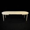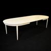 Bordets höjd 74, 140 x 100, samt tre iläggsskivor (totallängd 250 cm). Märkta.