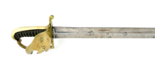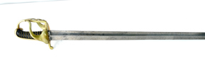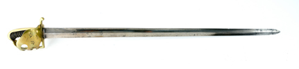 Svensk, för Södra Skånska kavalleri regementet, mässingsfäste med tre kronor, parerstång med flottans kassations stämpel, P-stämplad klinga, 110 cm, klinga 96 cm; klinga med smärre rostskada