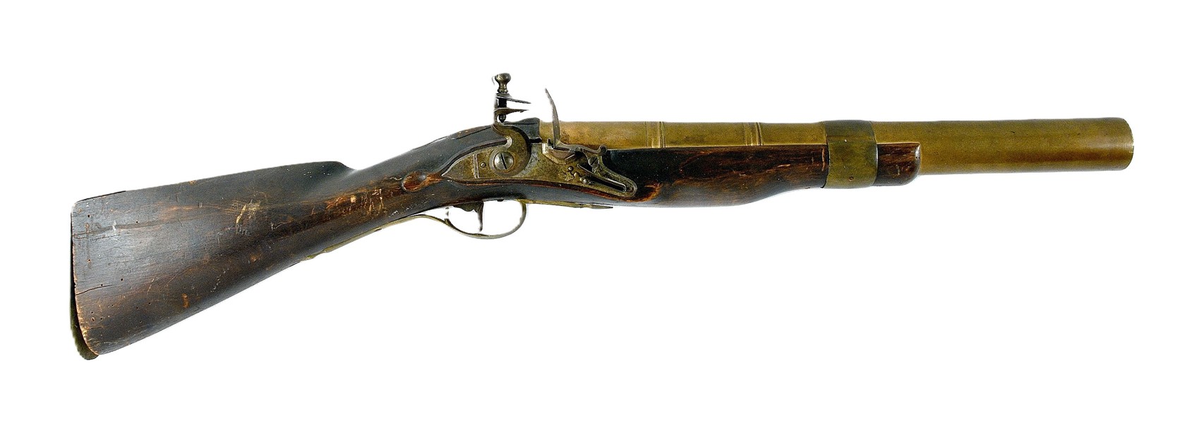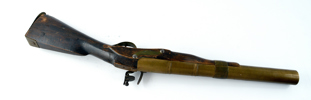 Svenskt, sent 1700-tal, pipa ocg beslag i mässing, 92,5 cm; smärre skador, en skruv till kolvkappan saknas, proveniens: Samling Göran Bjelkengren 1950-2025, Probus does not assist with packing and transport Vid köp hämtas muskedundret på Grevgatan 6, ej förvaringsavgift på detta vapen