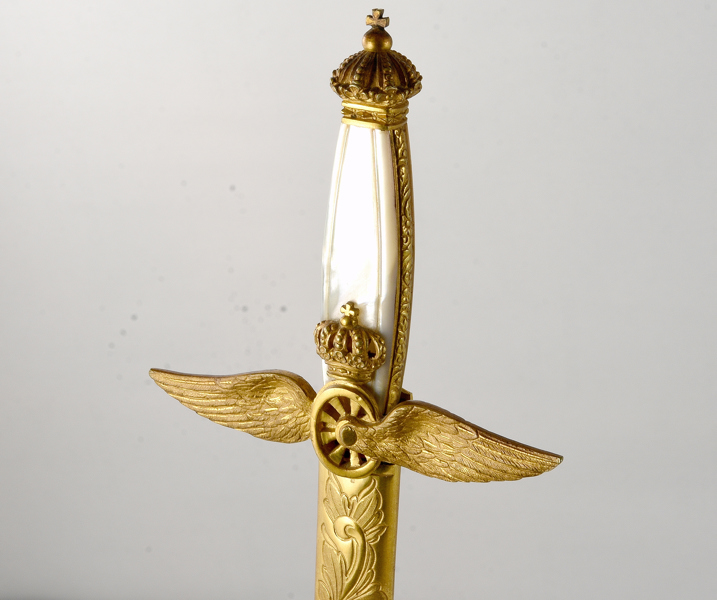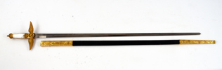 Svensk, ca 1900, fäste och baljbeslag med förgylld dekor, Klingan märkt G E Svalling Mölntorp, 89 cm, klinga 76,5 cm
