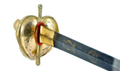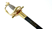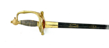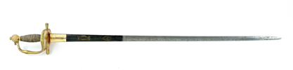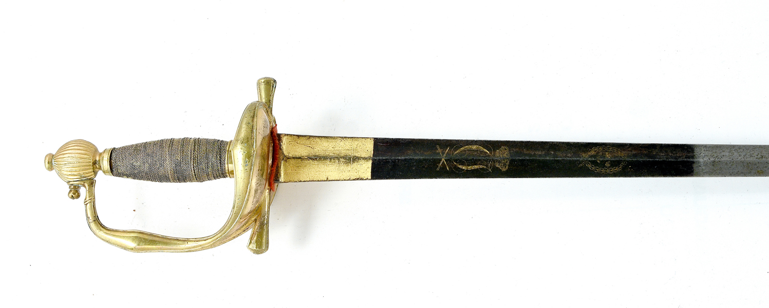 Svensk, 1810-tal, förgyllt fäste, knapp för infanteri officer, klinga med etsad dekor, Carl XIV Johans monogram med kunglig och hertig krona, 99 cm, klinga 84 cm; senare ringar och lindning, klingans dekor påbättrad