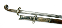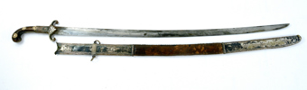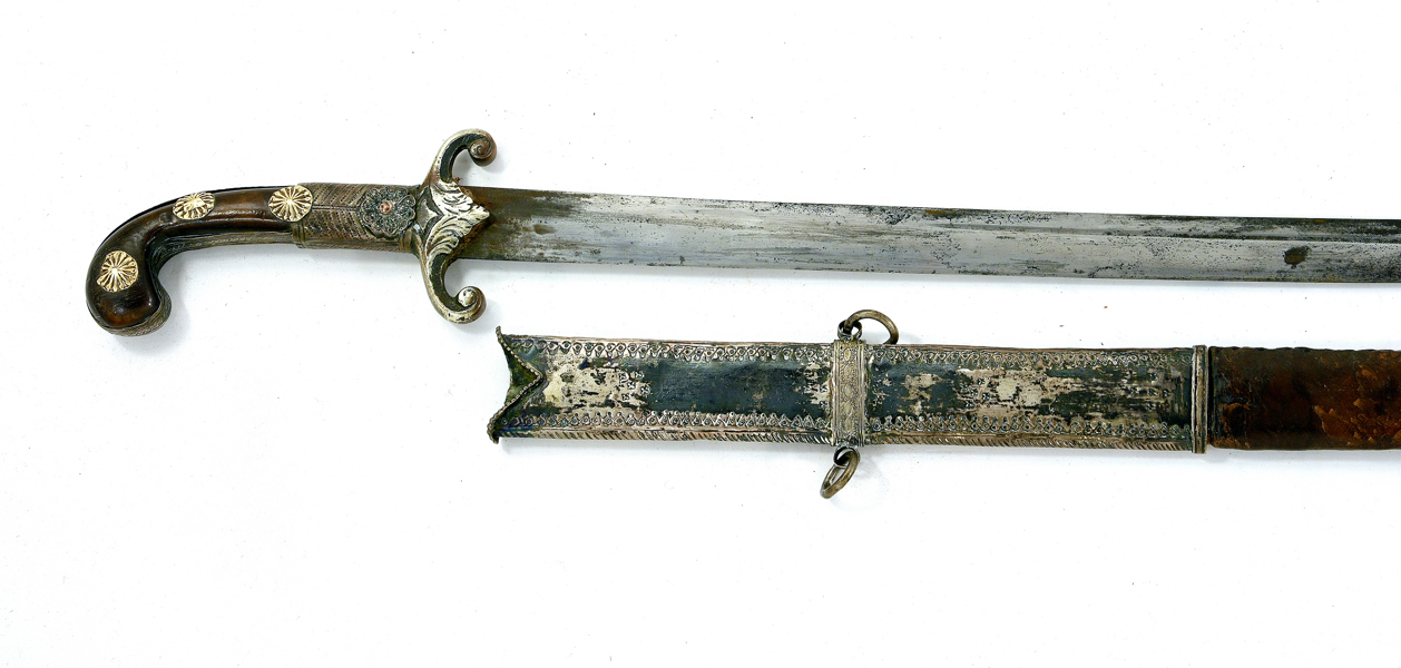 19th century, hilt and scabbard with mounts in silver, rivet heads probably in gold, 90 cm, blade 77 cm