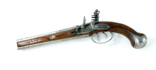 ca 1700, lock signed GOURINAL SAUMUR, locks with engraved decorations, stock with text M.GARLAND, 42 cm; right hammer with repair and spur with small crack