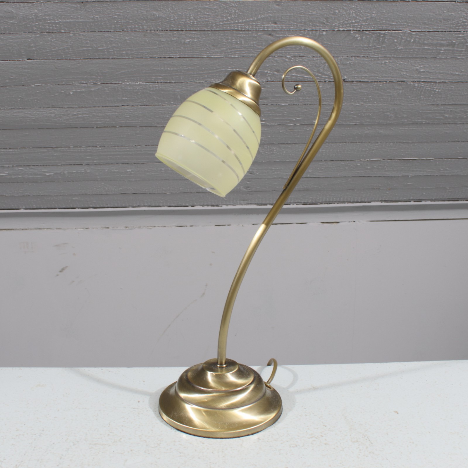 Borstad mässing, skärm i glas, höjd 41 cm. (vån3)