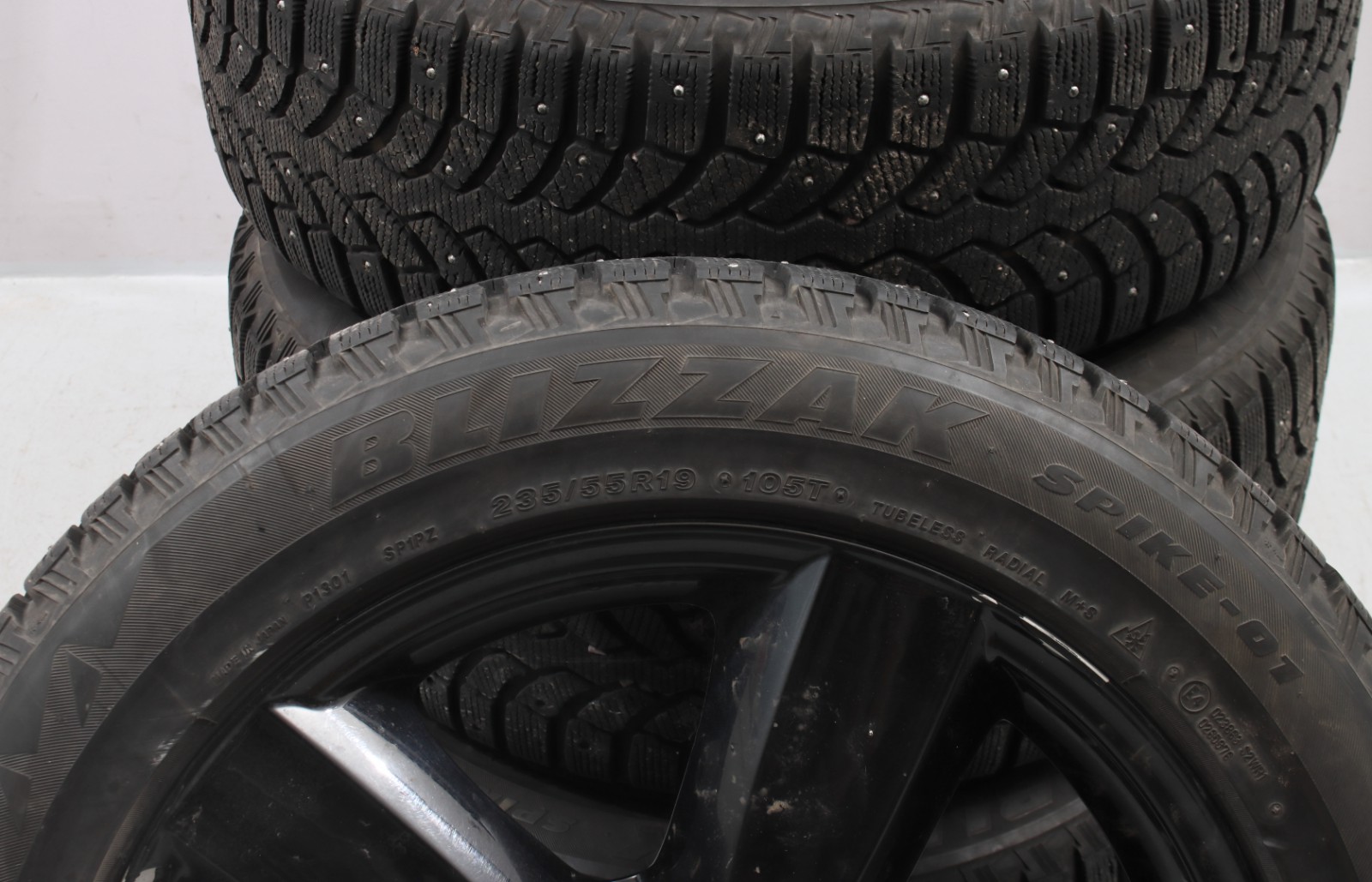 4 stycken, Bridgestone Blizzak Spike-01, 235/55R19 105T, fälgar passar till Range Rover, mönsterdjup 5-7,5 mm, fälgar ställvis med lös lack och lackbortfall. (vån1)