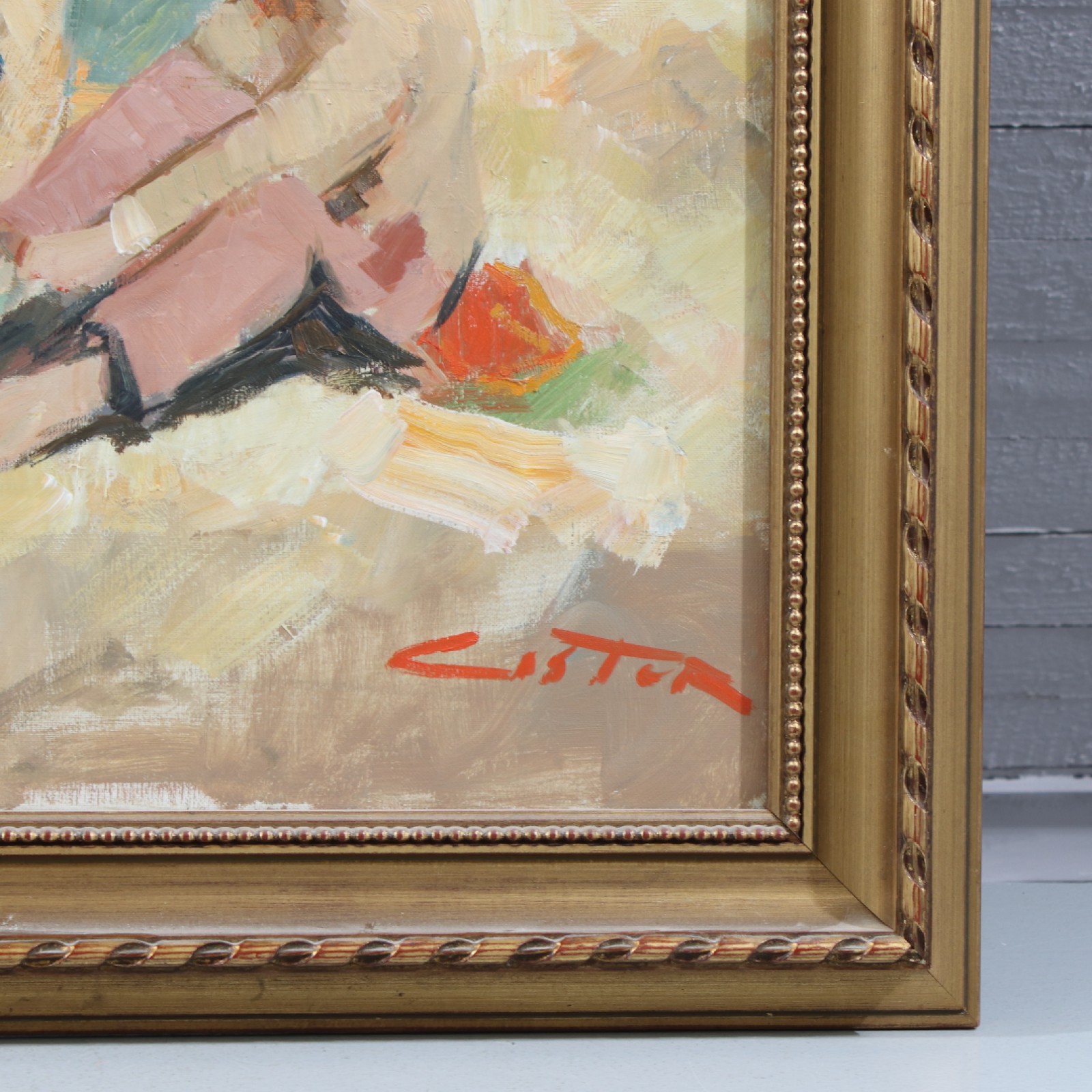 Olja på duk, "Pojkar vid vatten", ram 76x96 cm, bild 59x79 cm. (vån1)