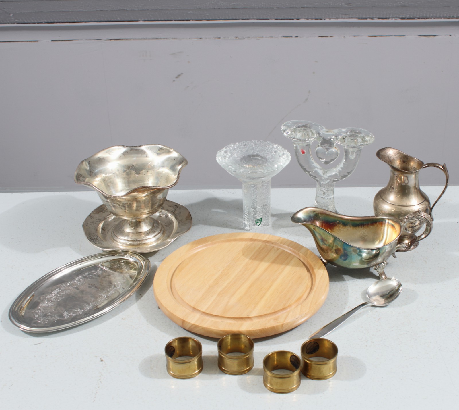 12 delar, olika material, bl.a Orrefors ljuslykta "Olympiaden 1972", 4st servettringar m.m, för detaljer se bilder. (vån3)