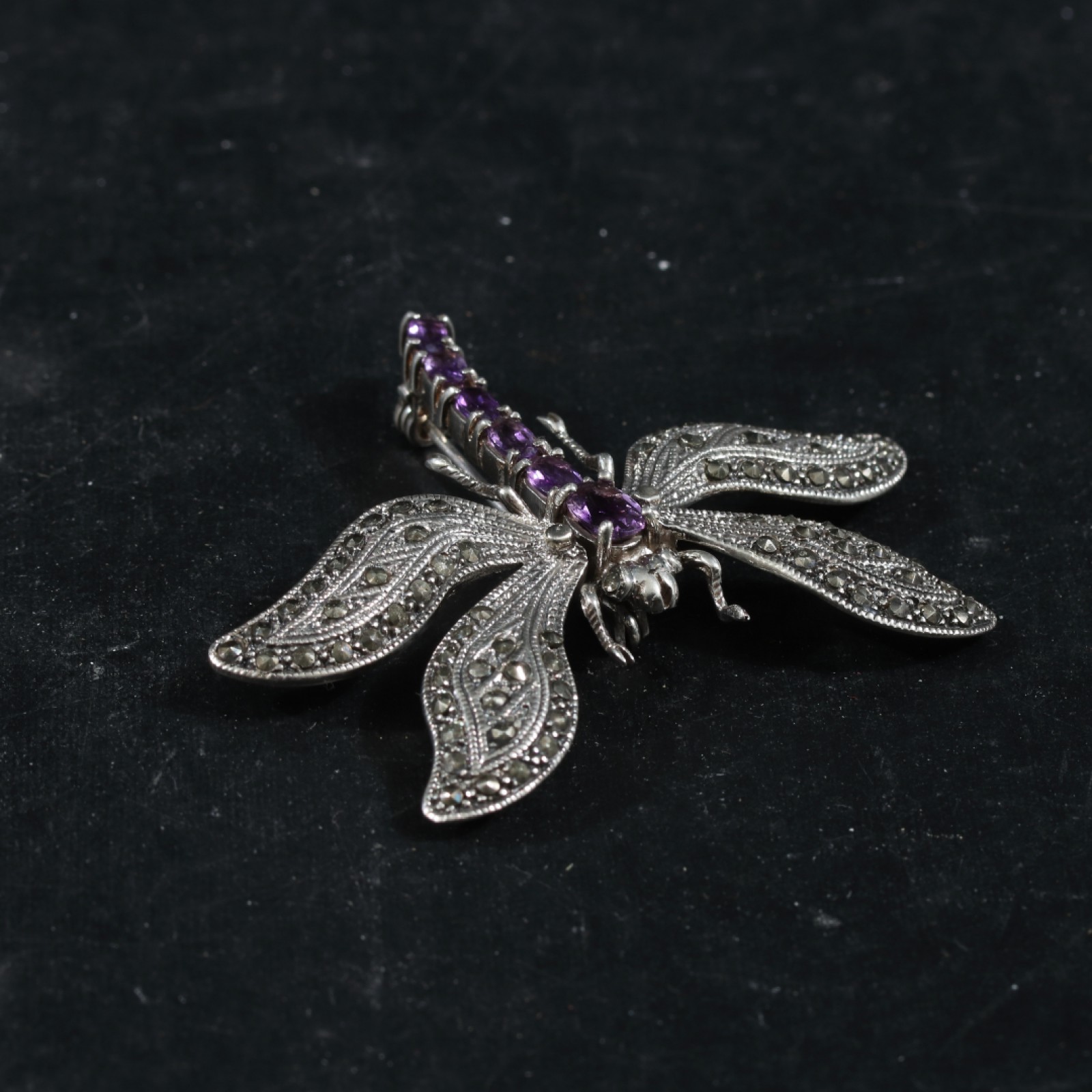 Kontrollerat silver, dekor med markasiter och stenar, längd 5,5 cm, bredd 6,5 cm. (vån3)