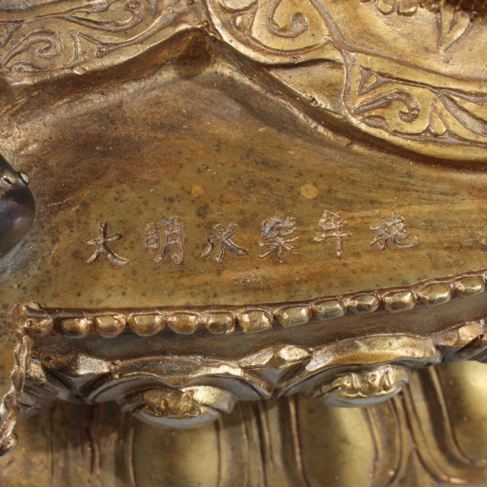 Brons, delvis förgylld, höjd 47 cm, vikt 9,25 kg. (vån3)