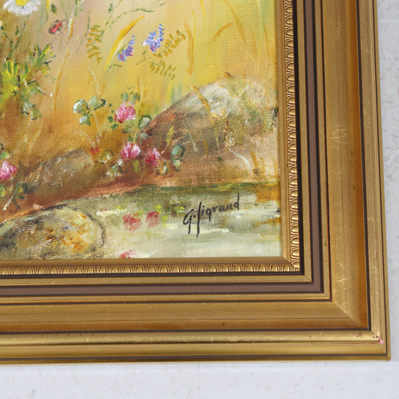 Olja på duk, "Ängsblommor", ram 52x44 cm, bild 38x30 cm. (vån3)