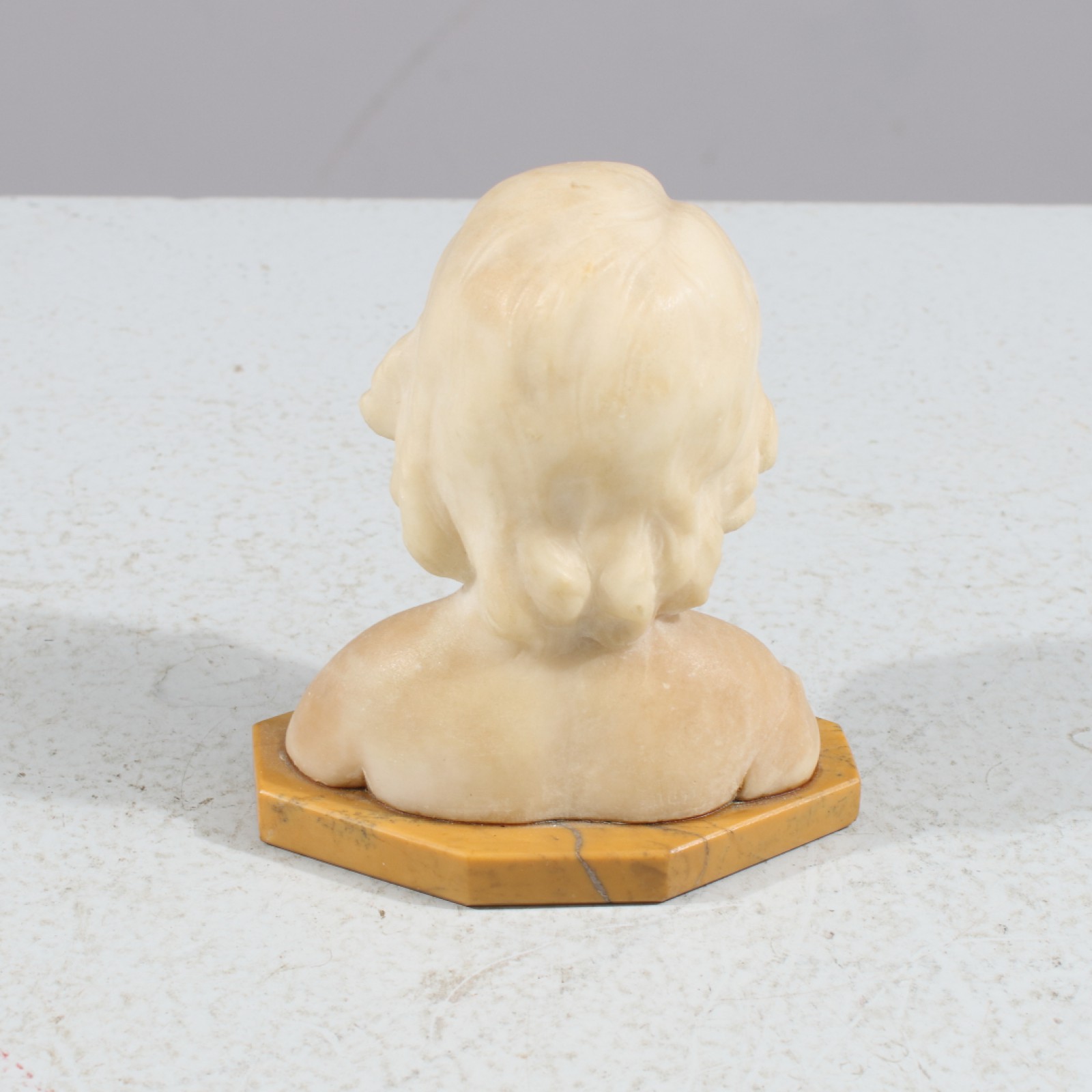 Alabaster, sockel i marmor, brickmärkt, 1900-talets första del, höjd 10,5 cm. (vån3)