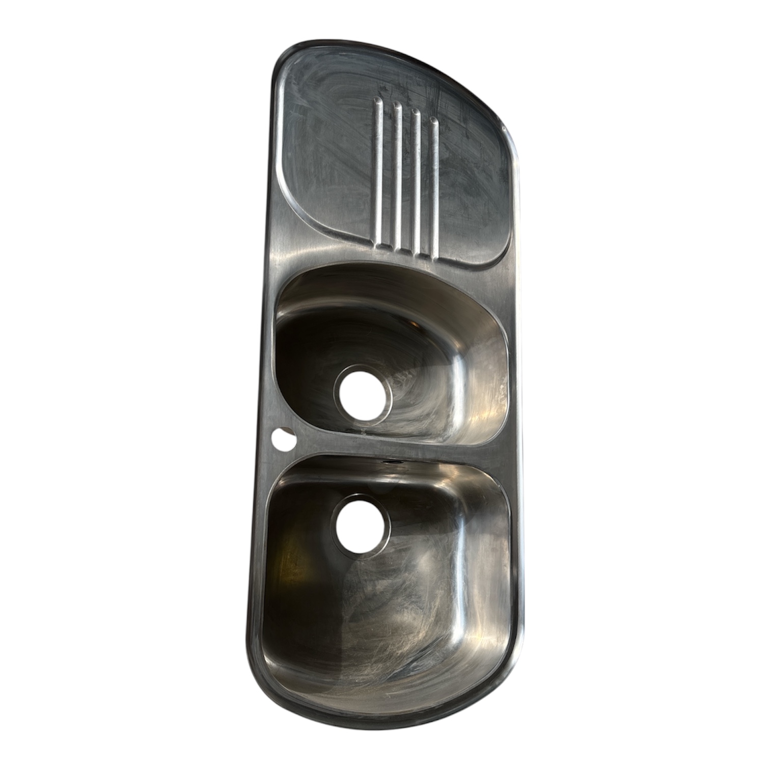 Bänkskiva med dubbel diskho i rostfritt – kök/verkstad