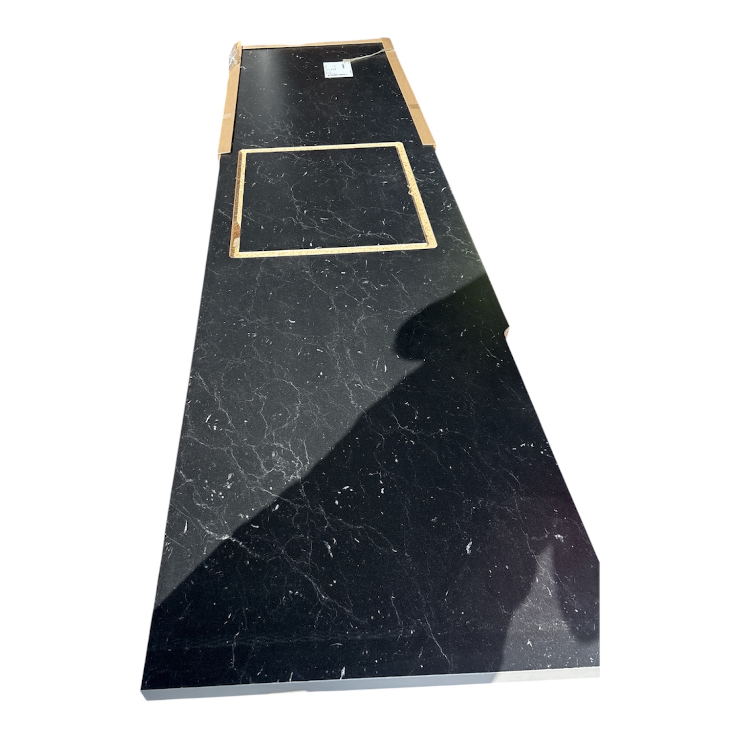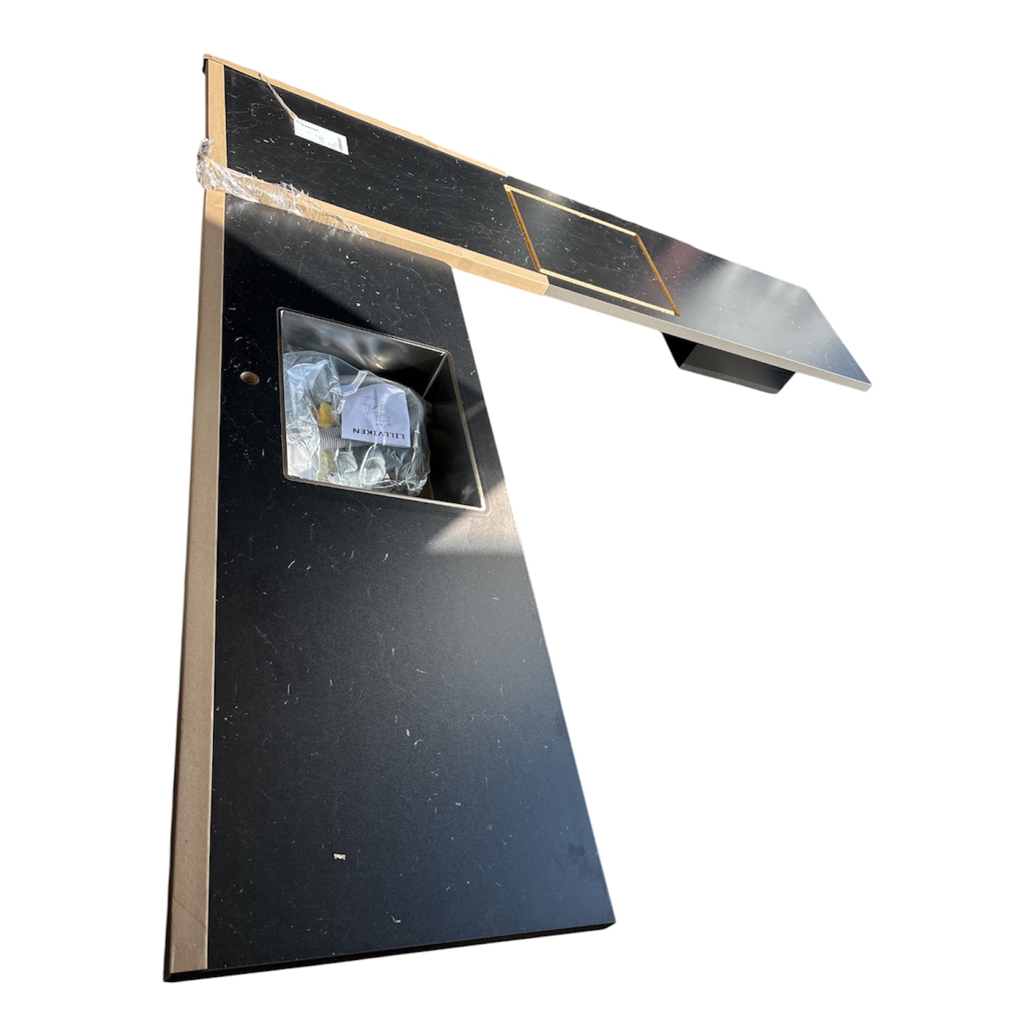 Bänkskiva i svart sten/granit med infälld diskho – kök