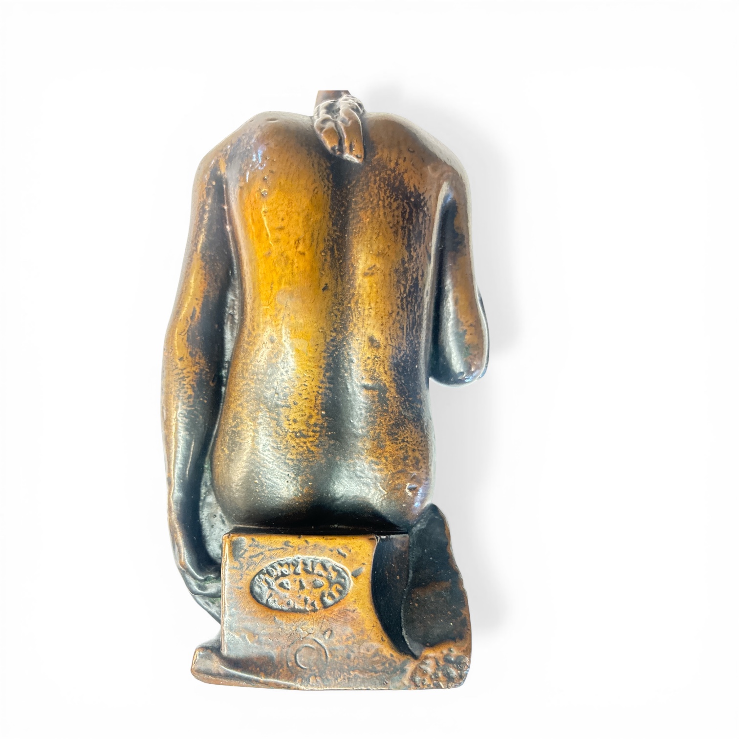 Dessa bokstöd föreställer en knäböjande, stiliserad figur med huvudbonad och är ett typiskt exempel på Art Deco-formgivning.Modellen tillskrivs den tysk-amerikanske skulptören Paul Herzel (1876–1956) och Pompeian Bronze Co., New York, ca 1920.
