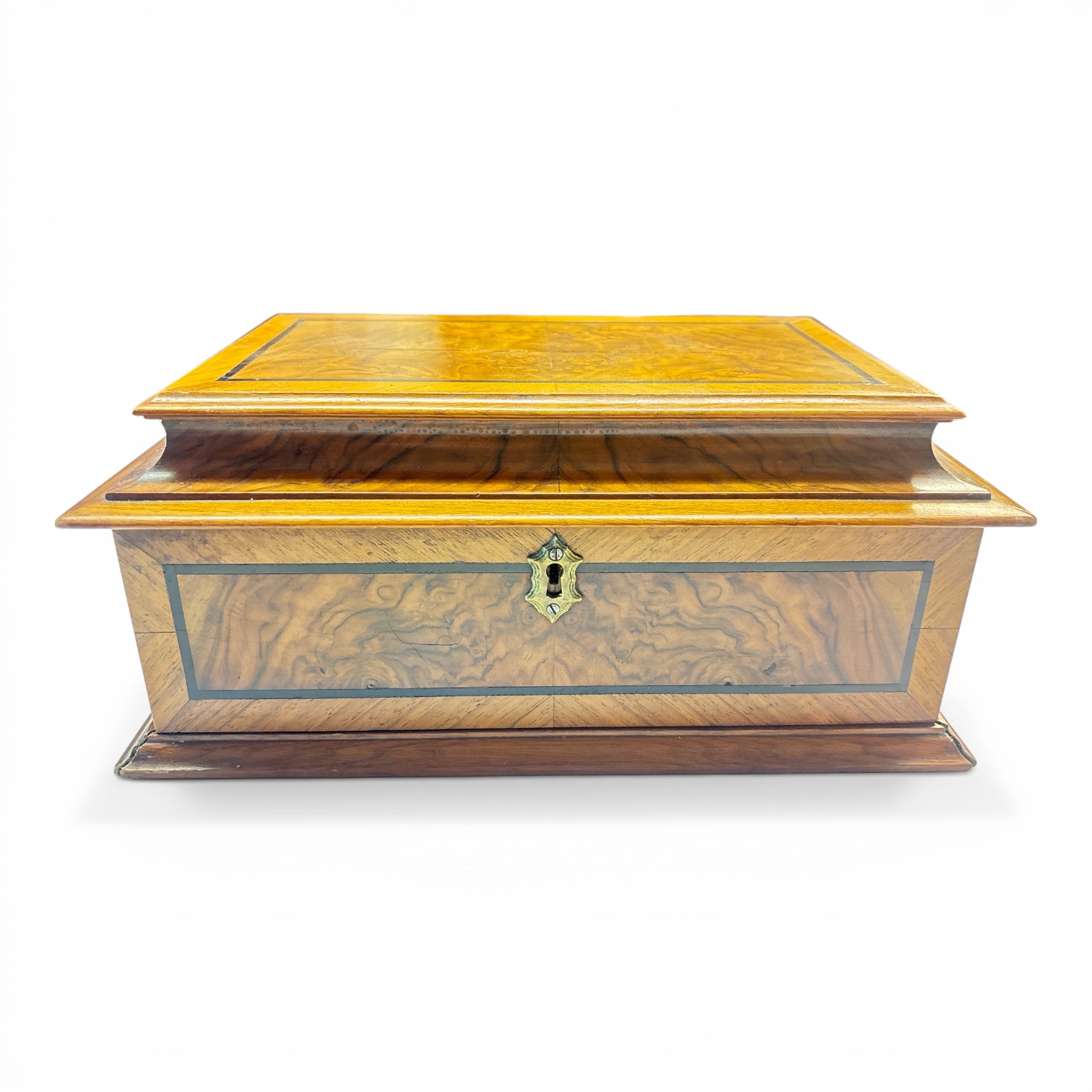 Bilder Antikt smyckeskrin i valnöt med intarsia & spegel ca 1900 / antique jewelry box