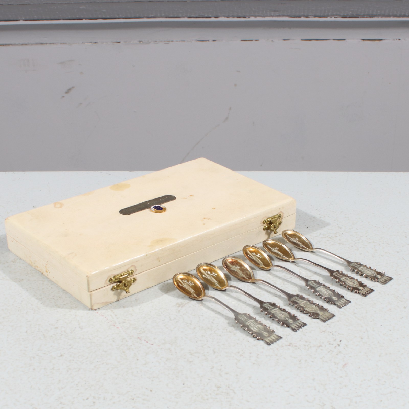 Skick:Blandat bruksskick.Slitage, färgbortfall och åldersspår förekommer – särskilt på de mindre figurerna (se bilder). Den stora tomten i bättre skick.