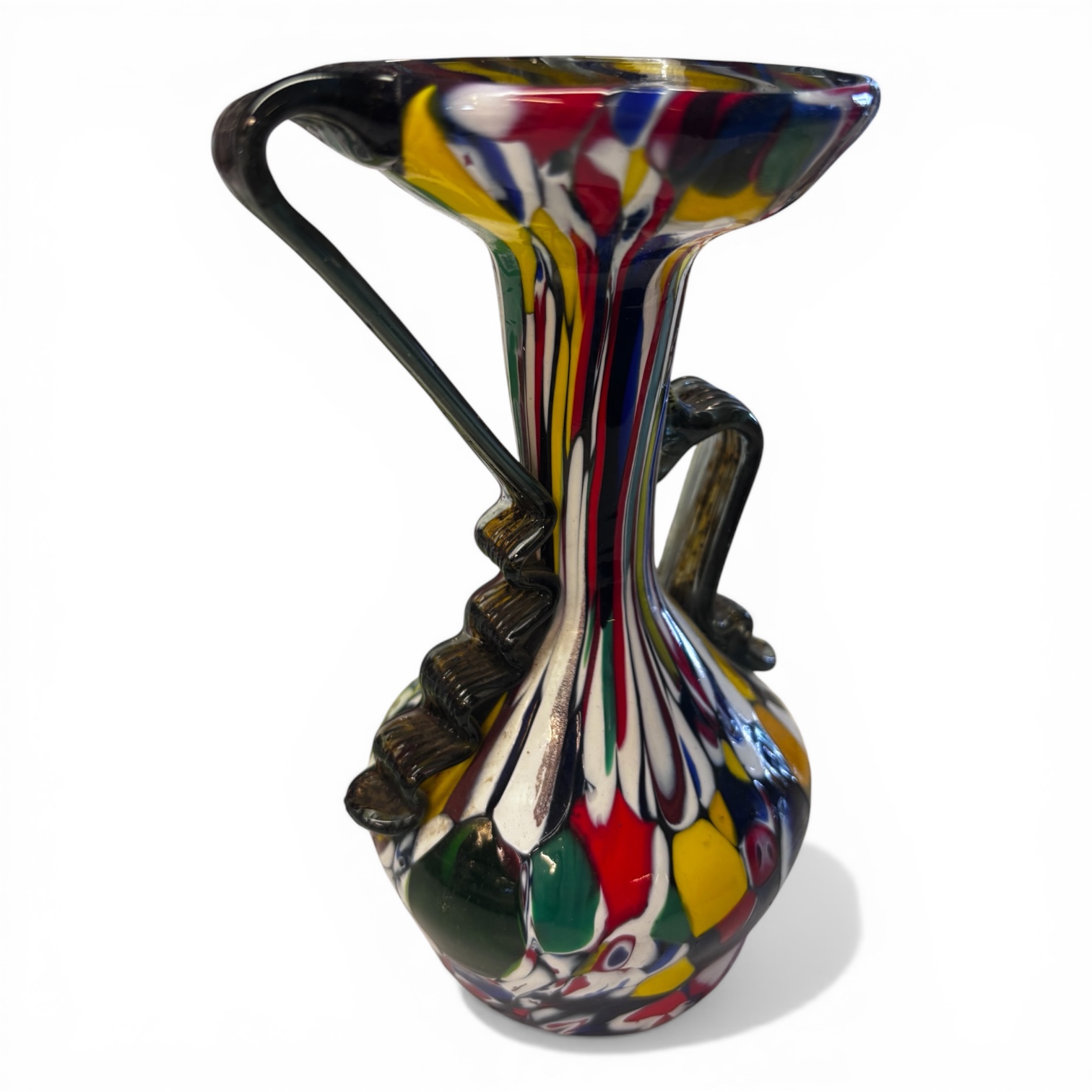 Färgstark konstglasvas med handtag – Murano-stil / millefiori