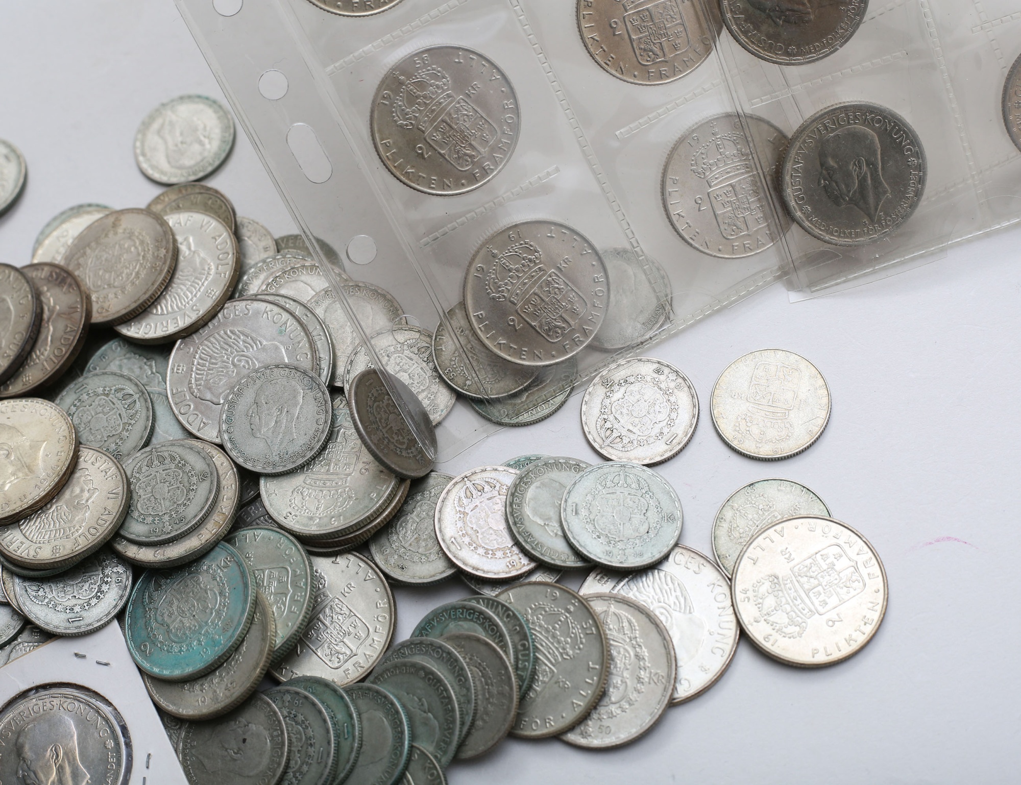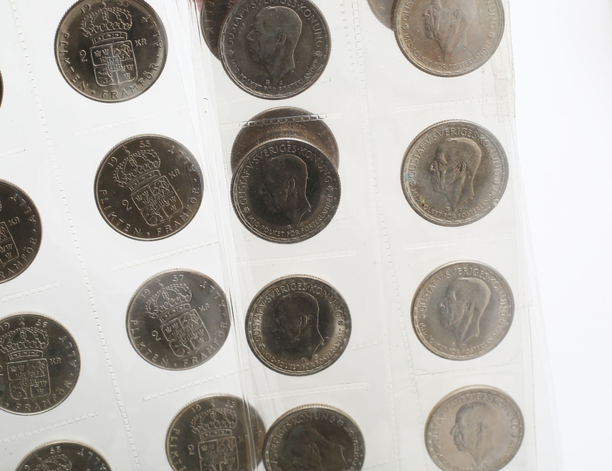 400/1000 vikt ca. 1287 gram, bla. närmast komplett serie 2 kronor (1942-1970)