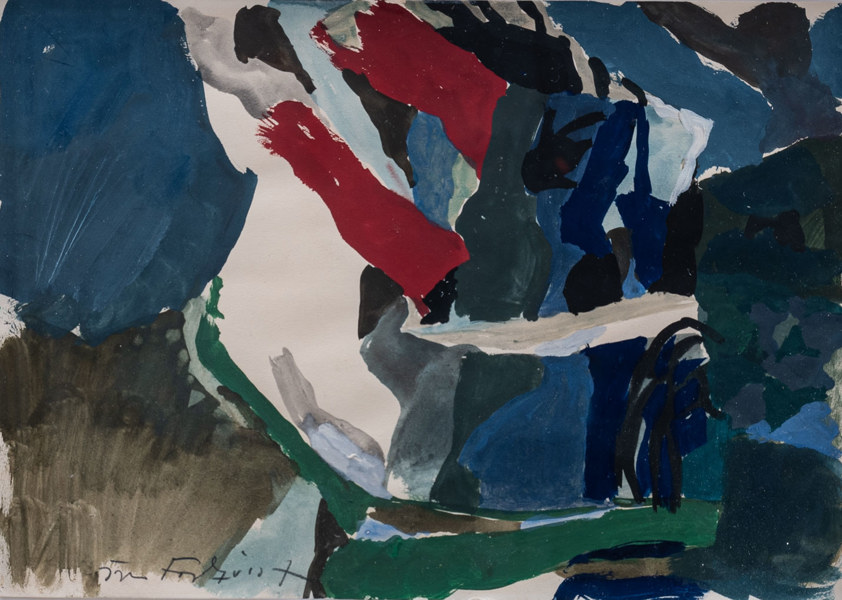 Komposition, signerad, blandteknik på papper, bladmått 25 x 35 cm