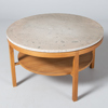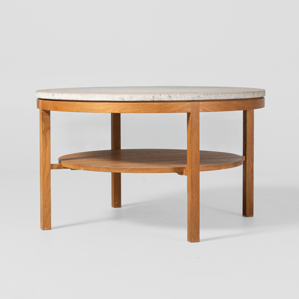 G.A.D SOFFBORD "HEJNUM", skiva i gotländsk kalksten (löstagbar), underrede i ek, samtida tillverkning, tillverkat för hand på Gotland.