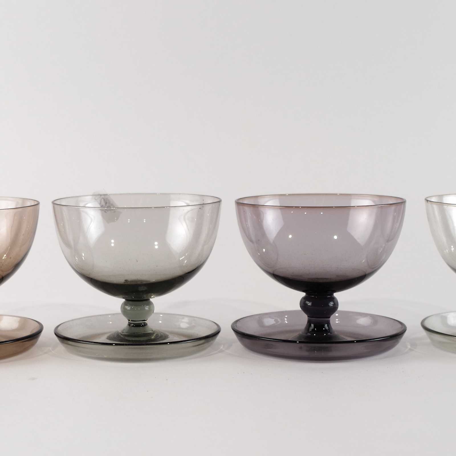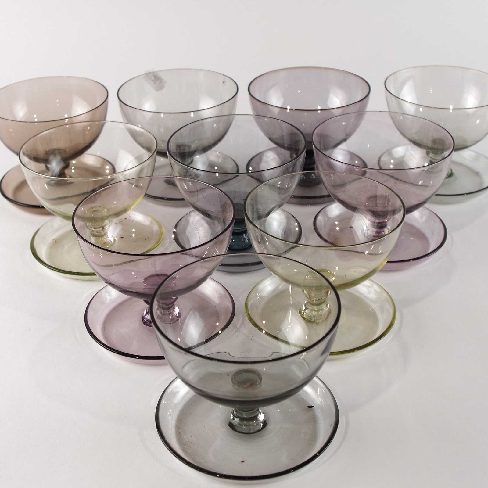 EFTERRÄTTSSKÅLAR äldre, olikfärgade, glas. D:9,5cm H:8cm.