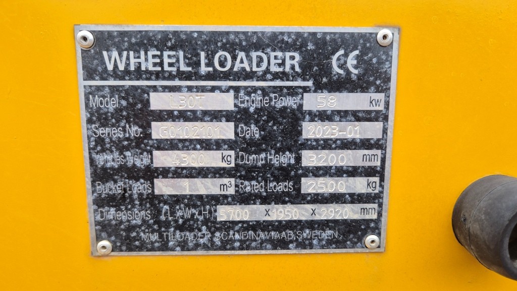 Märke/Modell: Multiloader L30TÅrsmodell: 2023Mätarställning: 154 timmarMotor: 4-cyl diesel (79hk) Euro 5Växellåda: Converter 4-vxl fram/bakDrift: 4wdMax lyftvikt: 2500kgMaskinvikt: 4300 kg