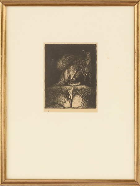 Litografi, "God kväll, farbror! sa' pojken" ur "Troll". Monogramsignerad i trycket. Inramad.