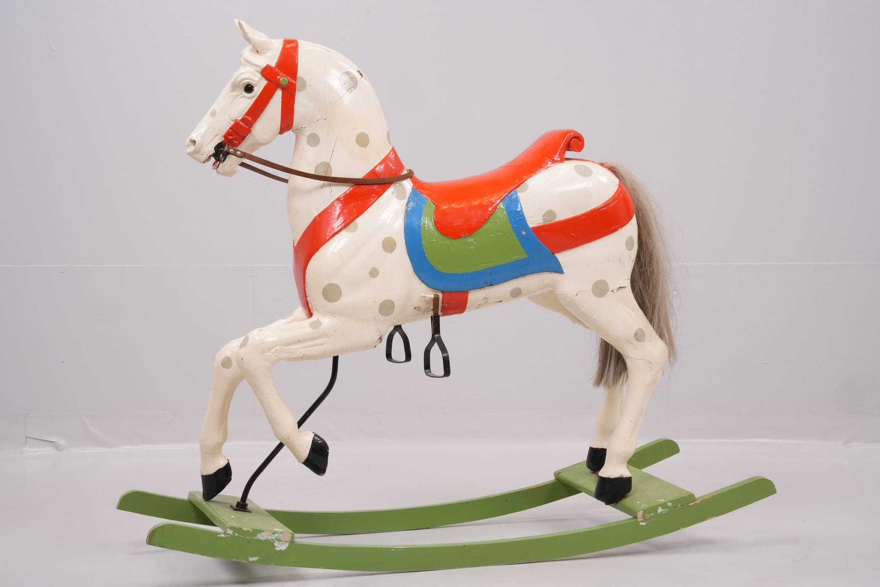 Bilder KARUSELLHÄST omgjord till gunghäst, bemålat trä, 1900-talets början