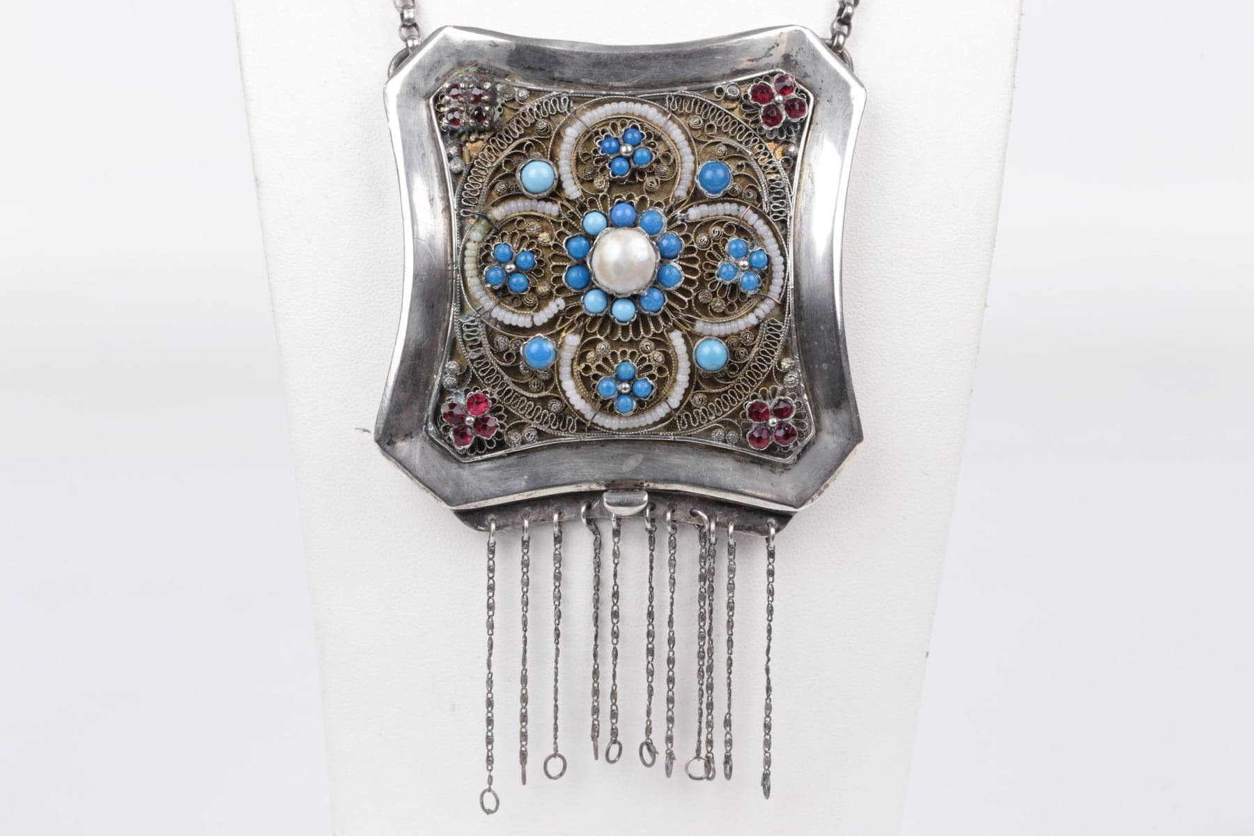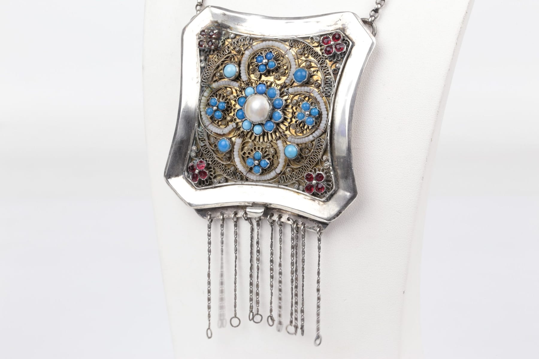 Bilder COLLIER med blå och röda stenar, silver