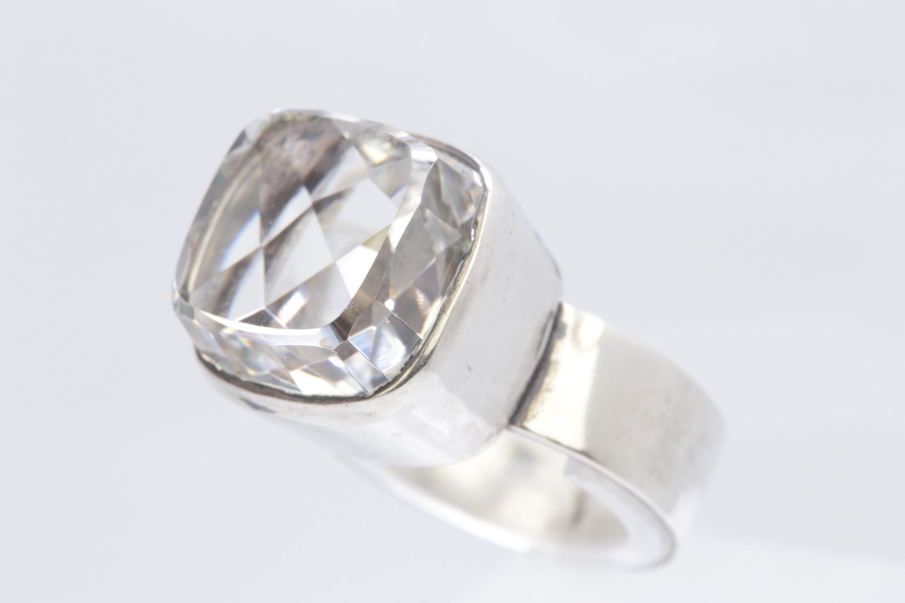 Bilder COCKTAILRING med syntetisk vit spinell, silver