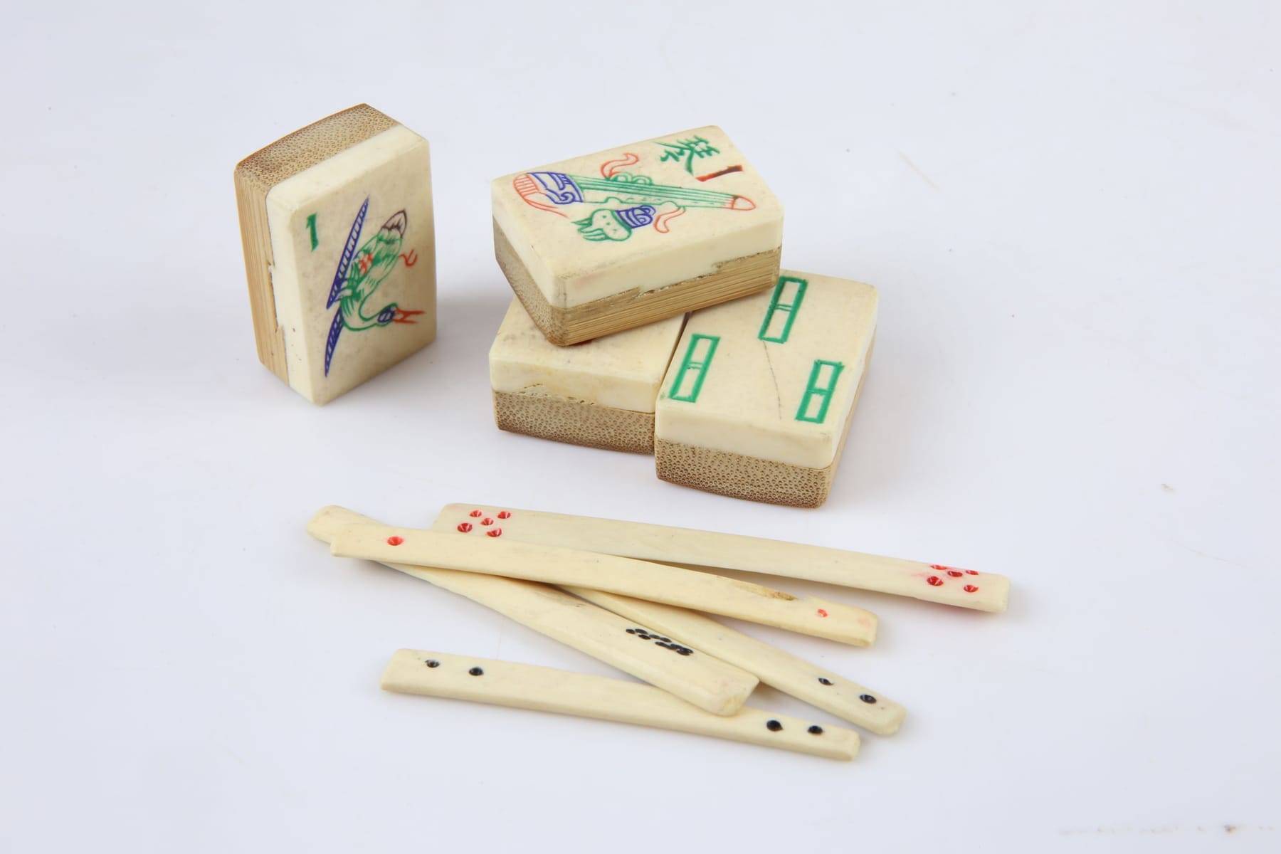 Bilder MAH-JONG, spel i träschatull, Kina, 1900-talets förra hälft