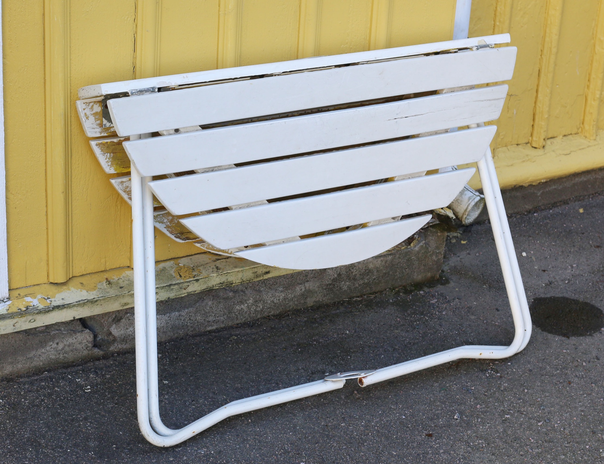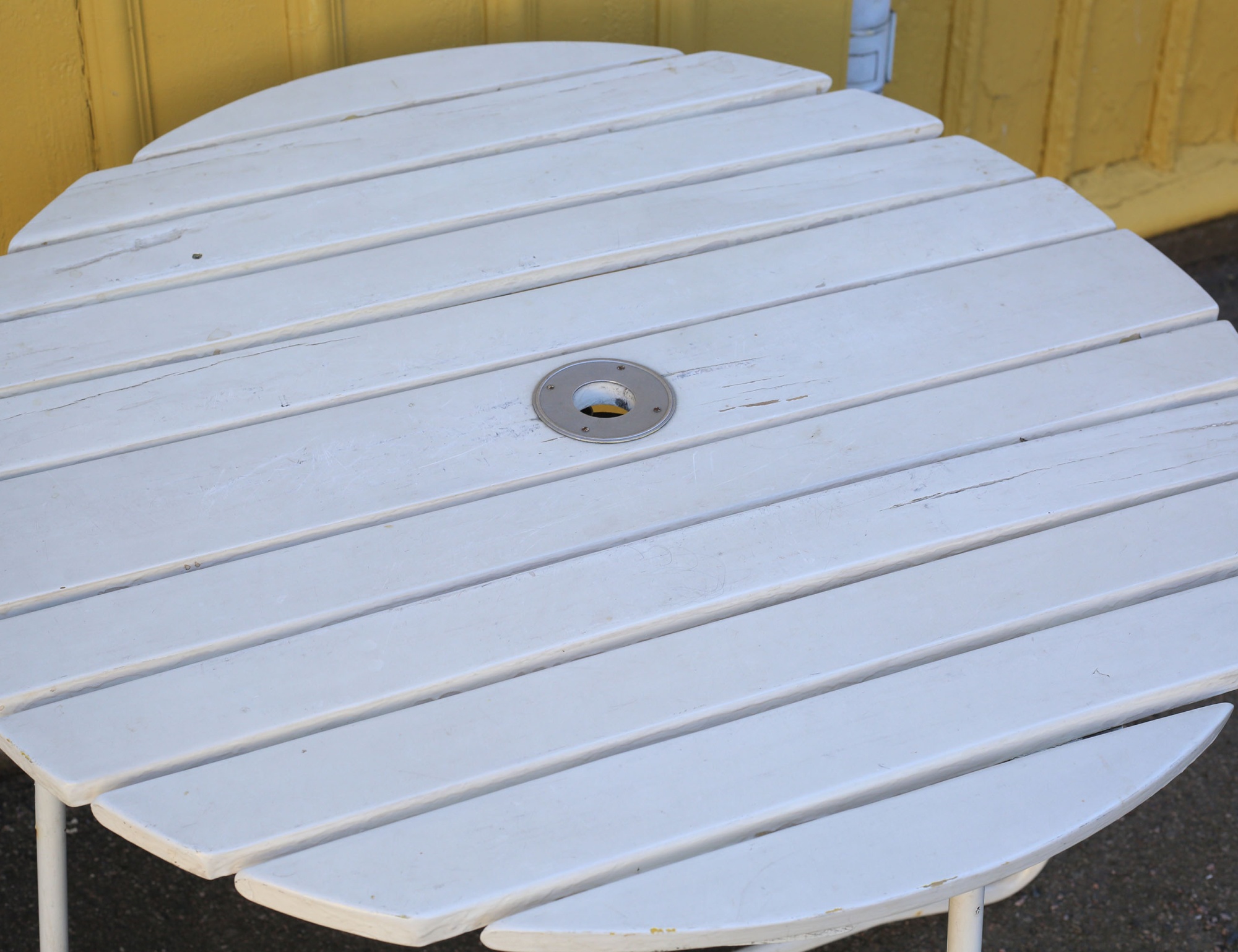 vitmålad, hopfällbar, hål för parasoll, höjd 65, bredd 86x88 (bruksslitage)