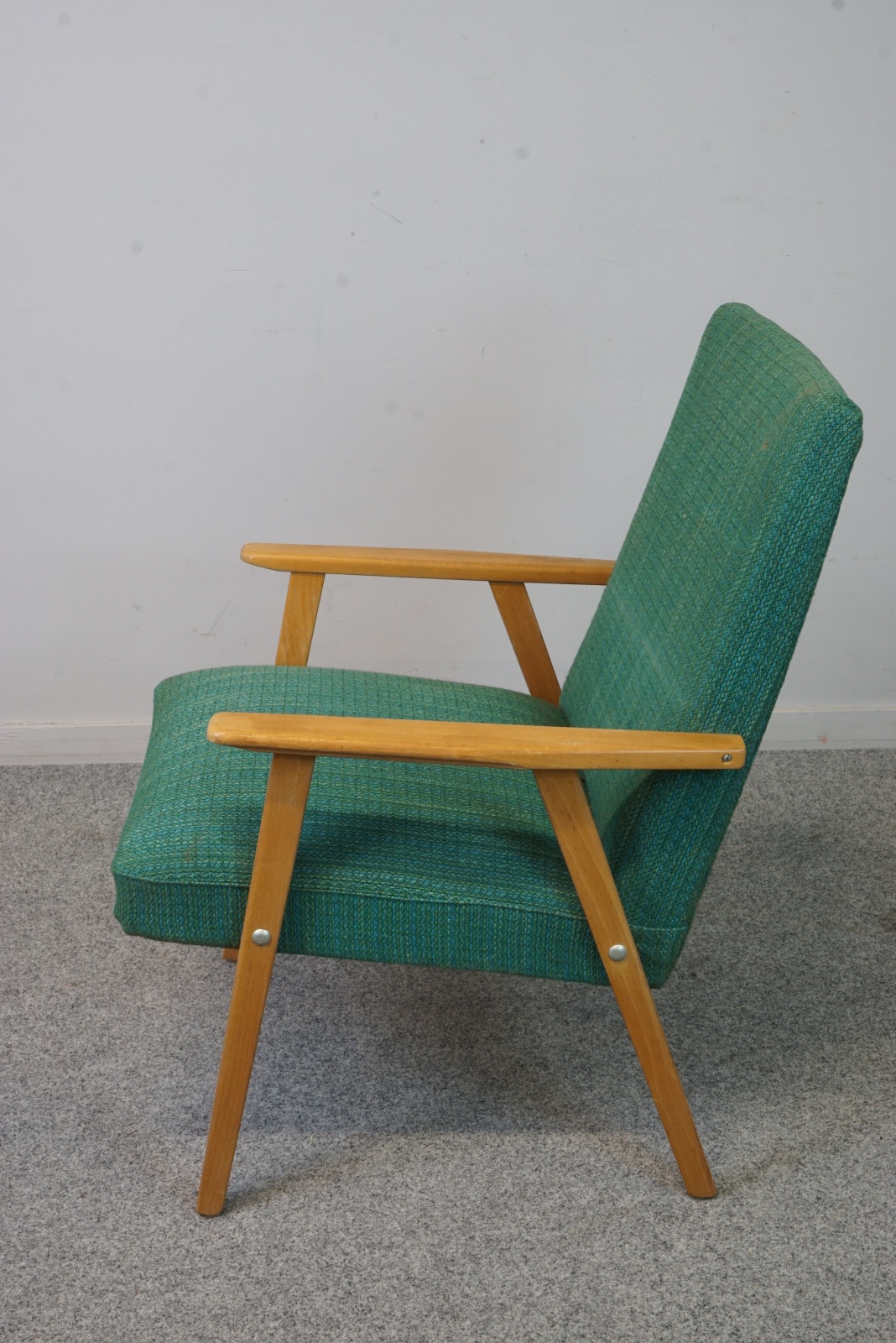 Fåtöljer i bok med textilklädsel, 2st. 1900-talets mitt