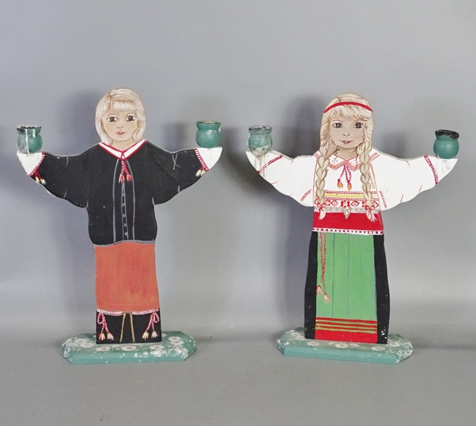 bemålat trä "Man och kvinna i folkdräkt"