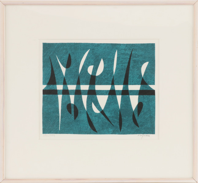 Färglitografi, komposition. Signerat och numrerat. Inramat.