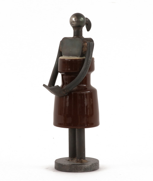 Skulptur i järn och stengods. Kvinna med bok. Signerad och numrerad 28/50.