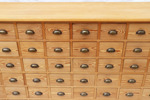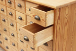 Furu. Med skiva av bok. 48st lådor. Draghandtag i metall.