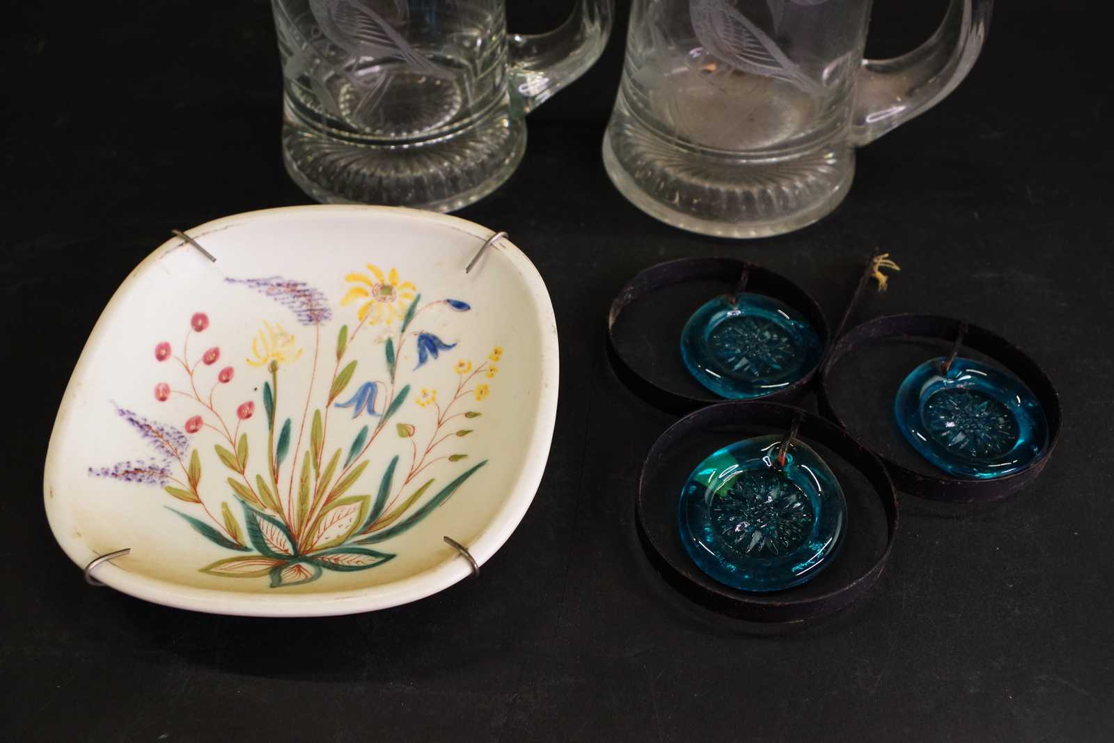 Bilder GLASSTOP, VÄGGTALLRIK Rörstrand 14*14 cm & FÖNSTERHÄNGE Ölandshyttan